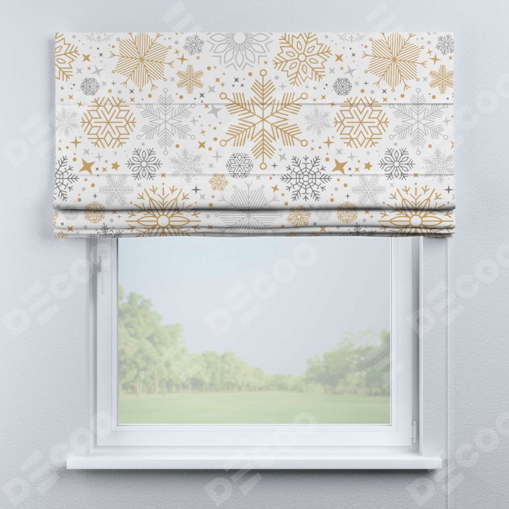 Римская штора производителя «Cortin», используется для проёма, пошита из ткани блэкаут с нанесением сублимационной печати «Снежное очарование». Имеет универсальный механизм и подходит для монтажа: на потолок, на стену и в нишу.