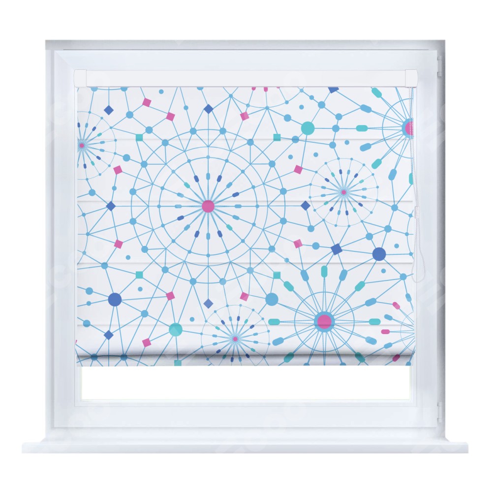 Римская штора производителя «Cortin», устанавливается на створку окна, пошита из ткани блэкаут с нанесением сублимационной печати «Круги и линии». Штора шьётся по индивидуальным размерам, для данного типа римской шторы возможная ширина от 35 до 150 см., высота до 250 см.