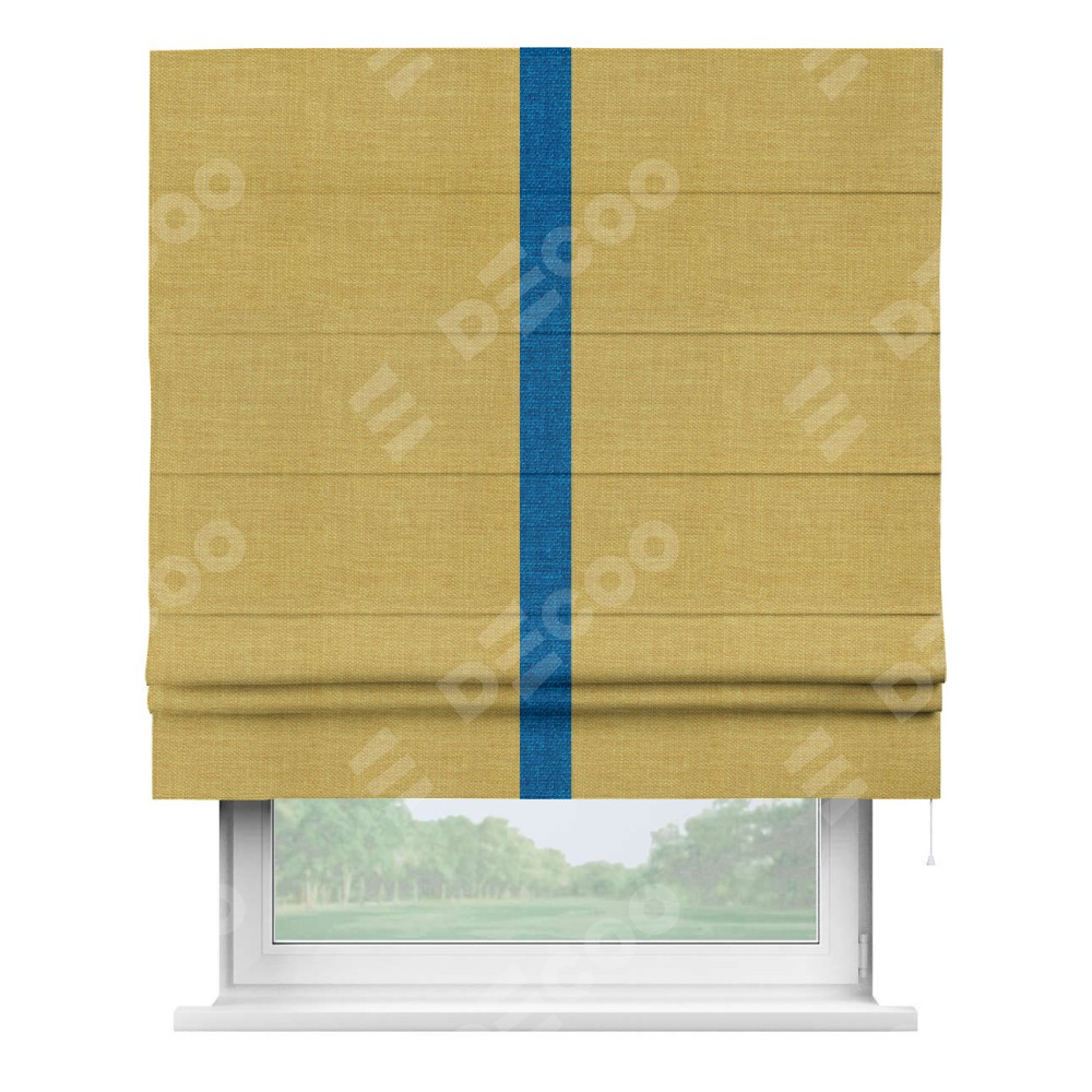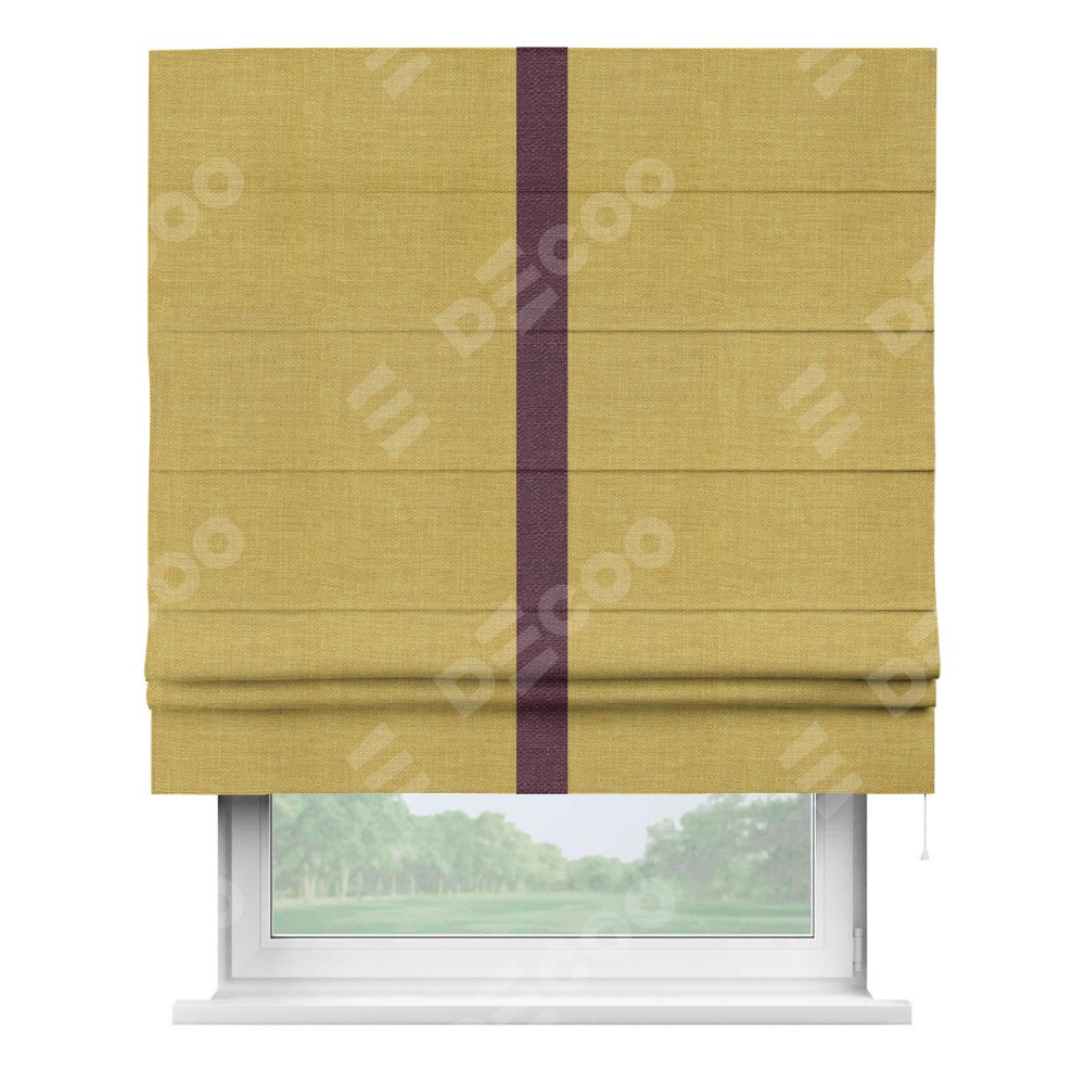 Римская штора «Кортин» с кантом Хайвэй, для проема, ткань лён горчичный