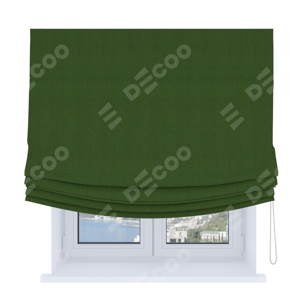 Римская штора Soft производителя «Cortin», используется для проёма, пошита из ткани блэкаут однотонный зелёный перламутр, артикул ткани 81859. Имеет универсальный механизм и подходит для монтажа: на потолок, на стену и в нишу. В отличие от стандартных римских штор, римская штора Soft не имеет горизонтальных вставок и нижнего отвеса. Это позволяет ткани произвольно драпироваться в свободные мягкие складки.