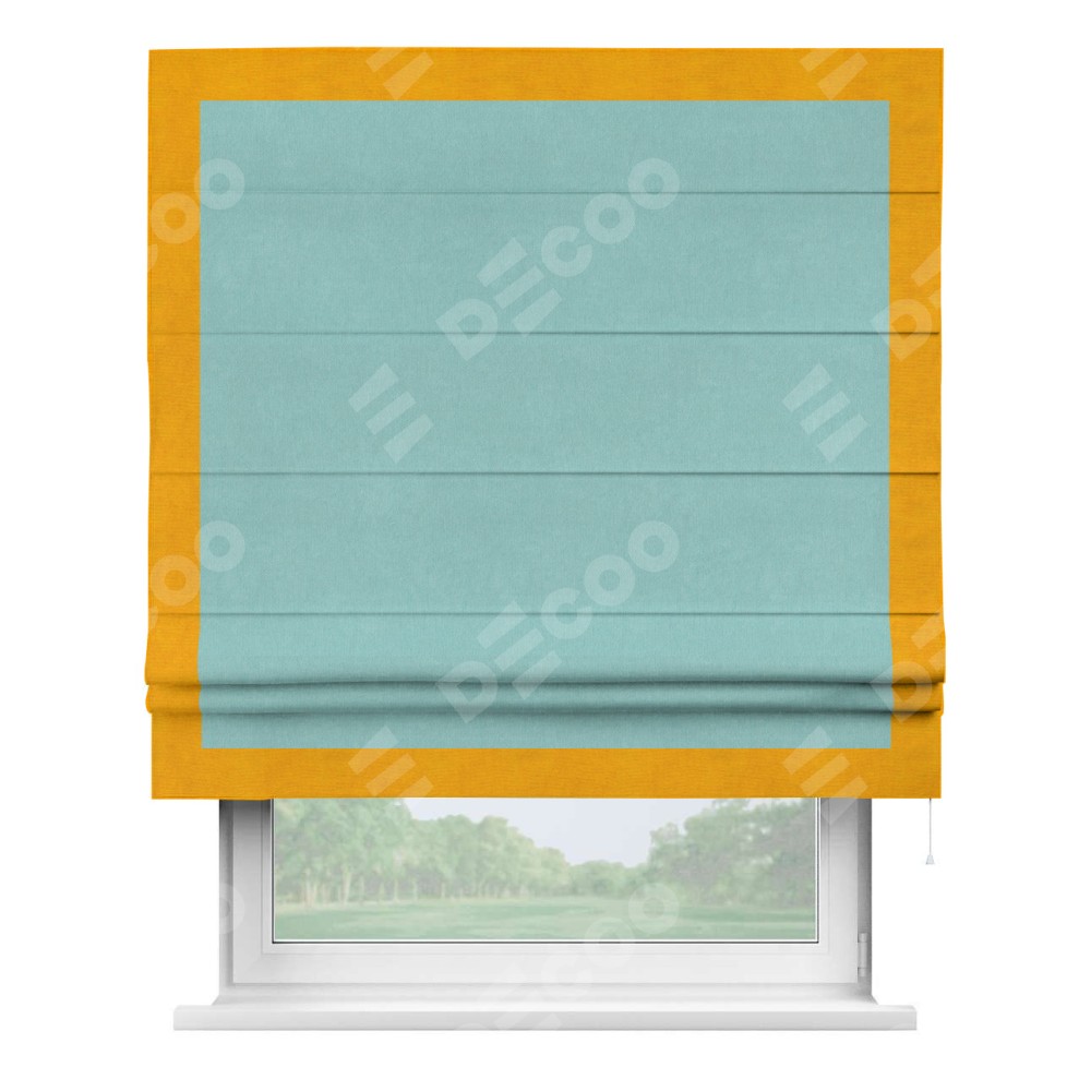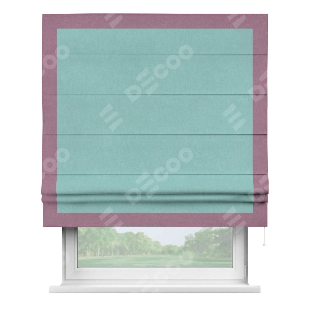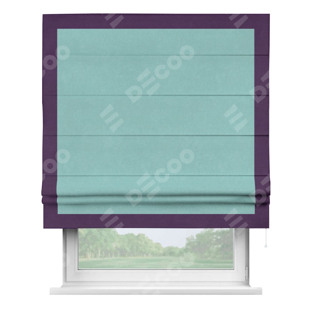 Римская штора «Кортин» с кантом Чесс, для проема, ткань вельвет тиффани
