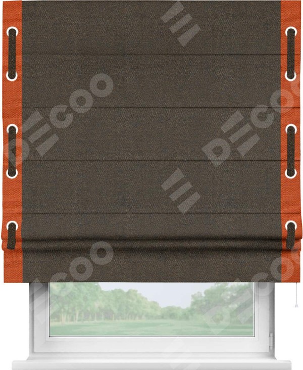 Римская штора «Кортин» с кантом Стрим Дуо (люверсы с пояском), для проема, ткань лён темно-коричневый