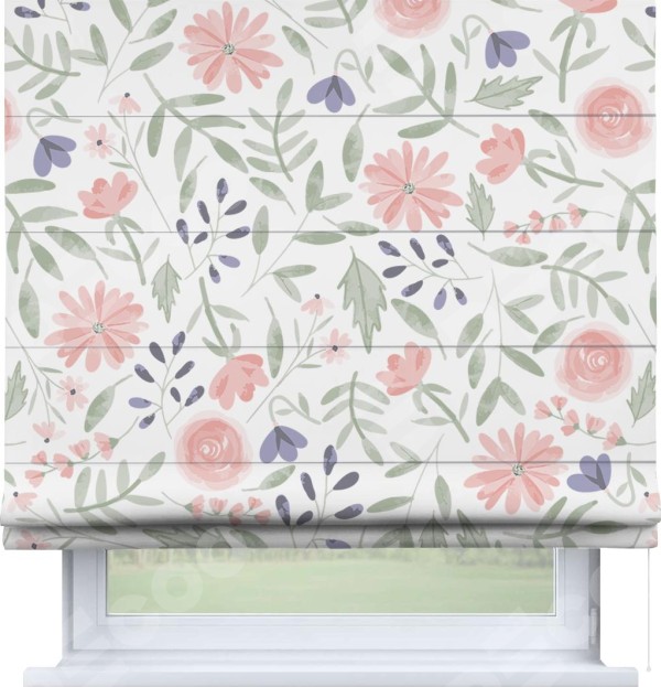 Римская штора производителя «Cortin», используется для проёма, пошита из ткани блэкаут с нанесением сублимационной печати «Изысканные цветы». Имеет универсальный механизм и подходит для монтажа: на потолок, на стену и в нишу.