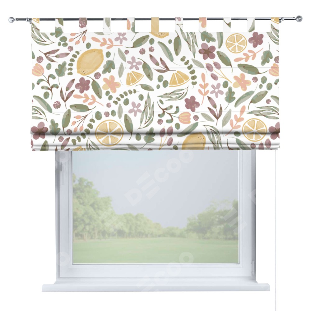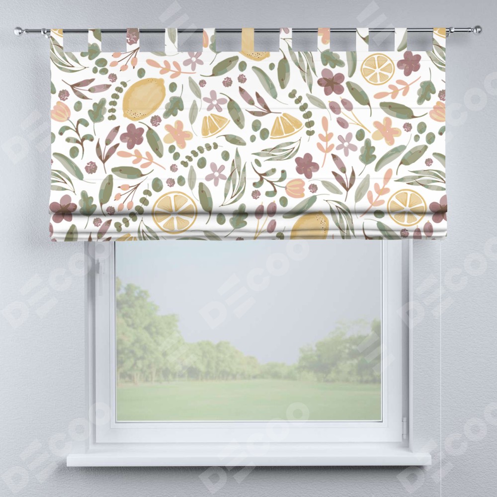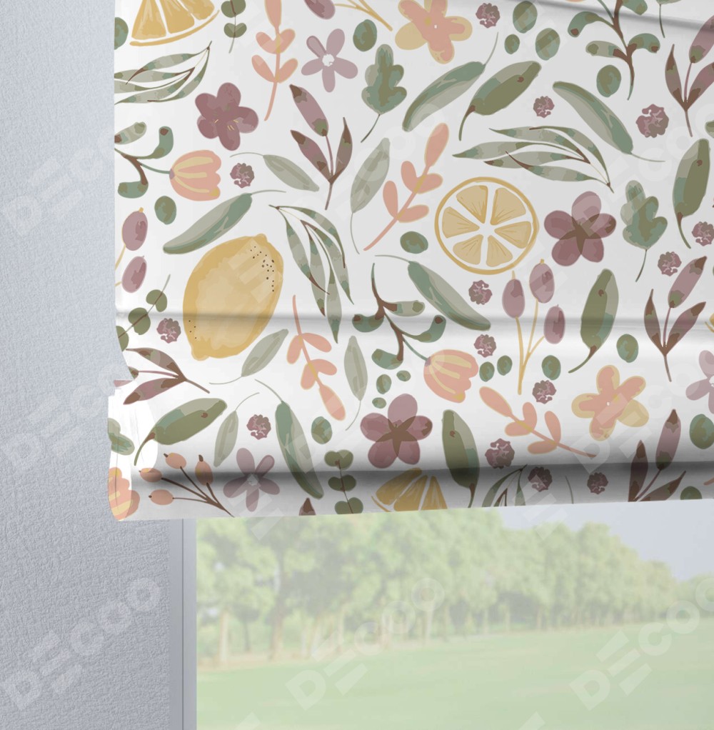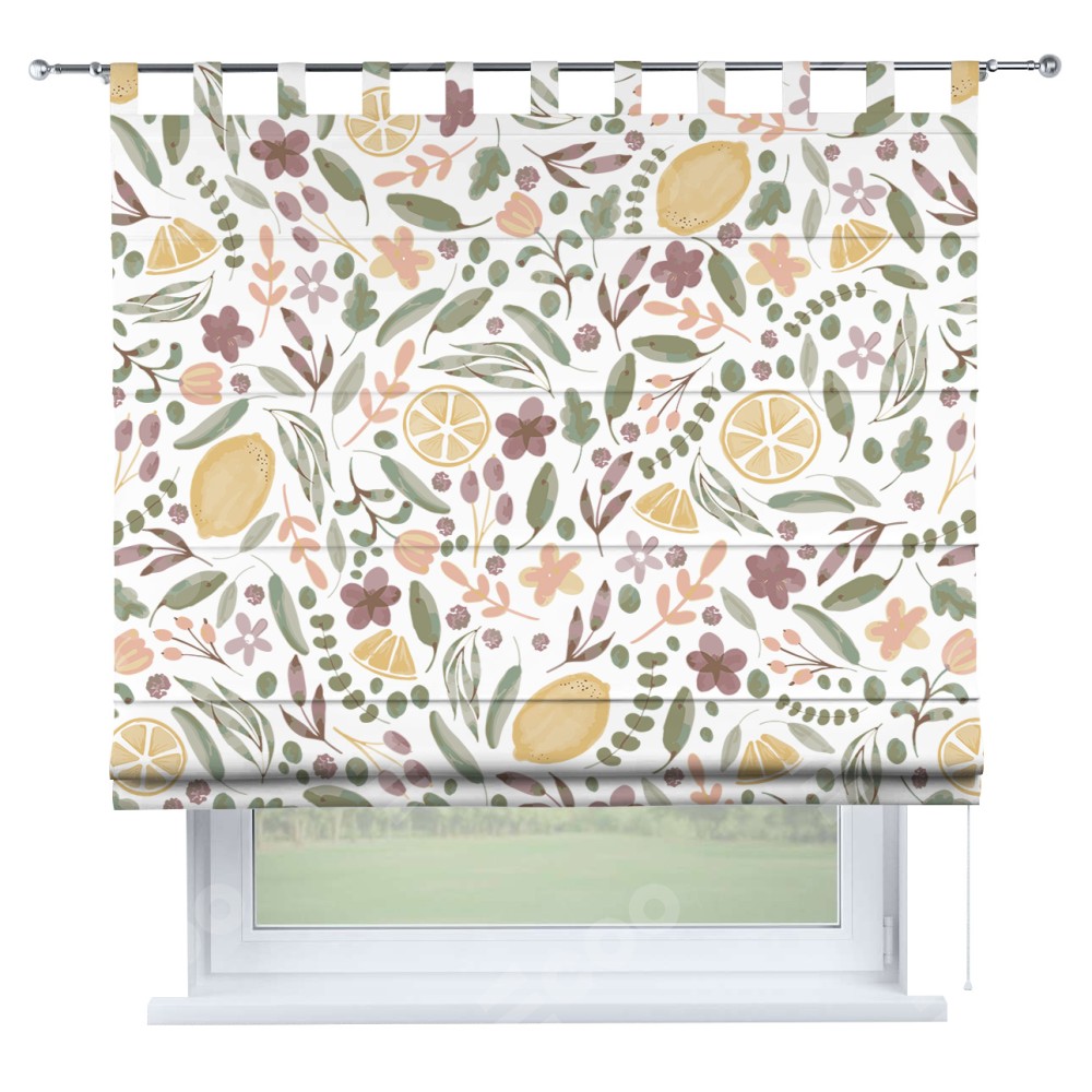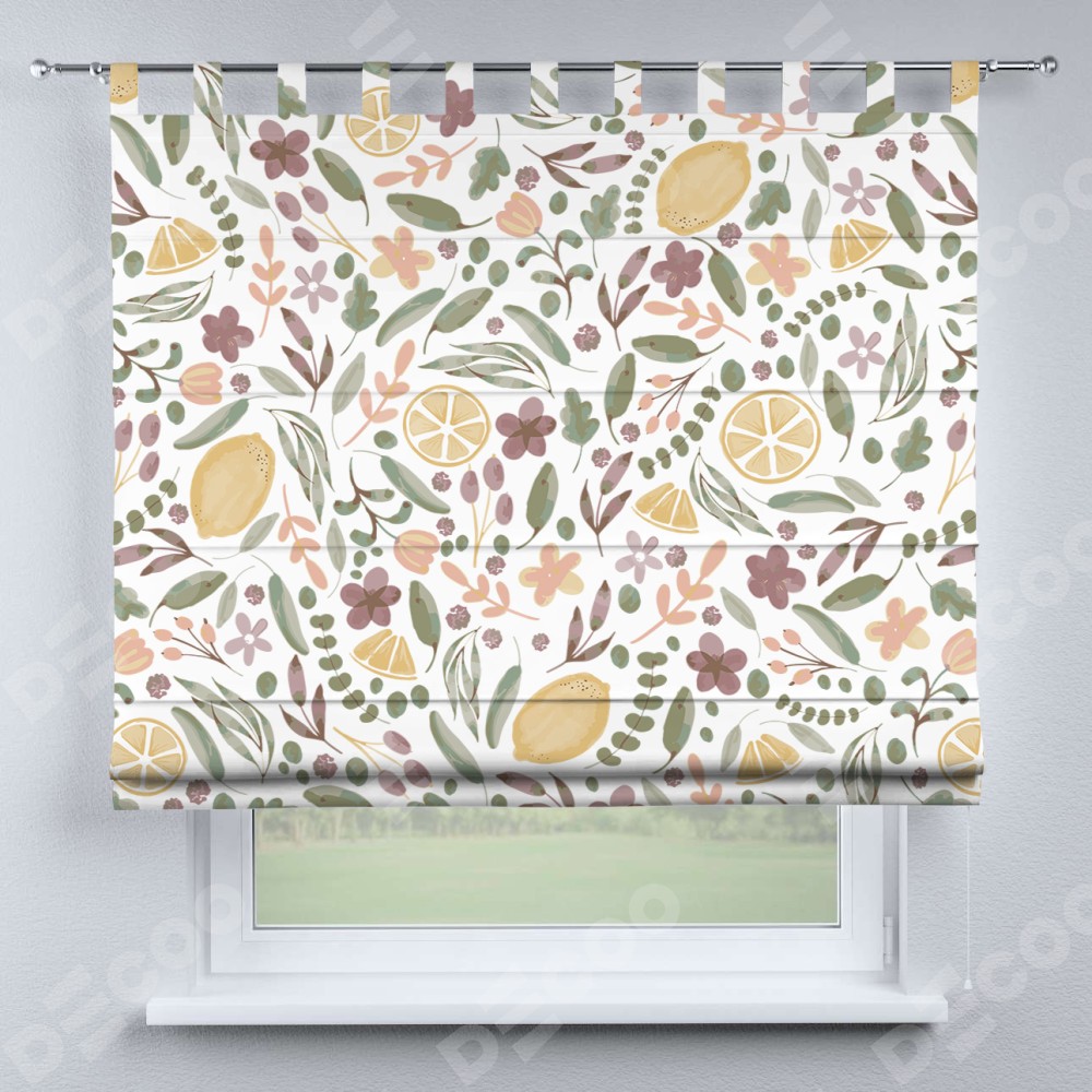 Римская штора «Кортин» на петлях «Лимоны и цветы»