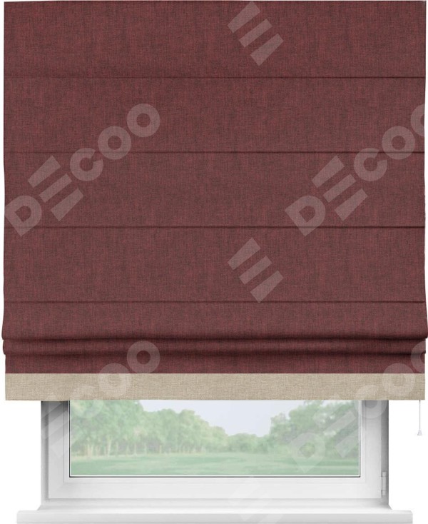 Римская штора «Кортин» с кантом Джестер, для проема, ткань лён кашемир бордовый