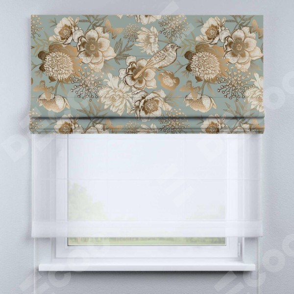 Римская штора день-ночь производителя «Cortin», используется для проёма, пошита из двух полотен, с лицевой блэкаут с нанесением сублимационной печати «Садовые цветы», вторая ткань тюль (по стандарту комплектуется тюль белого цвета артикул V-01). Имеет универсальный механизм и подходит для монтажа: на потолок, на стену и в нишу.