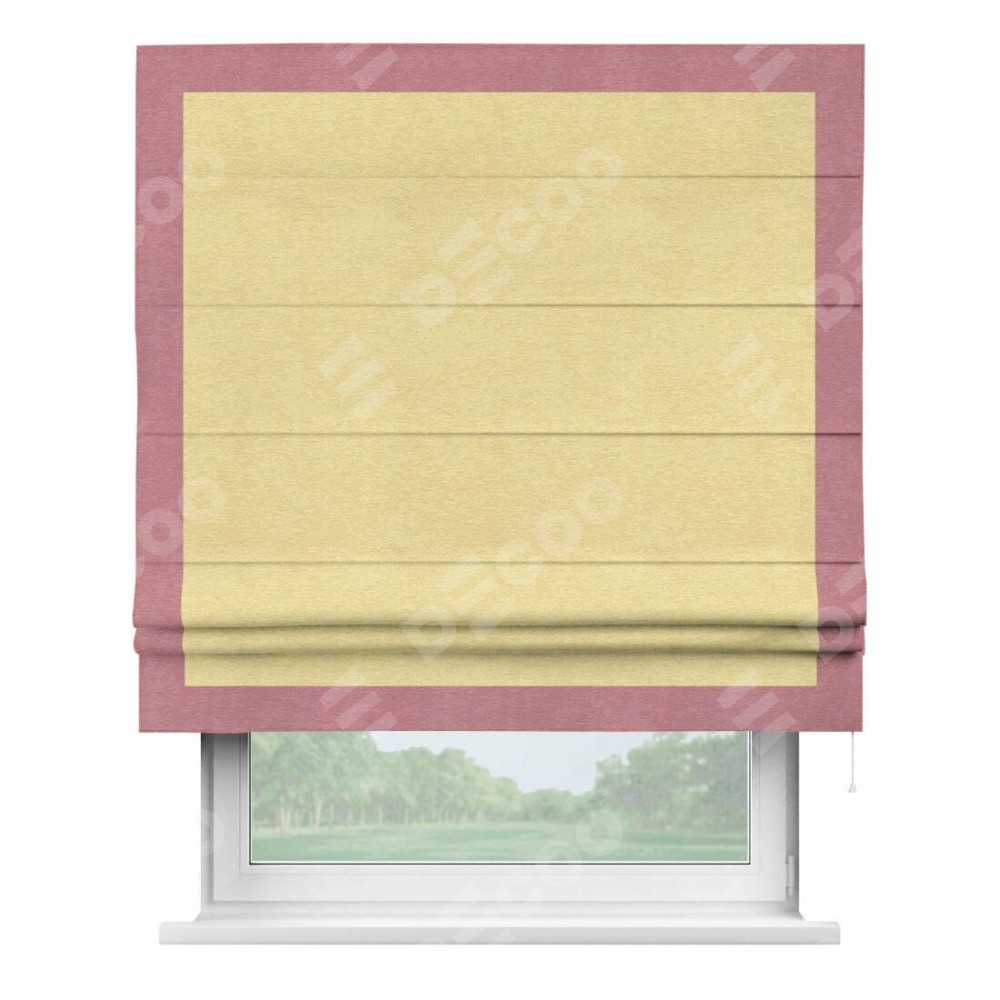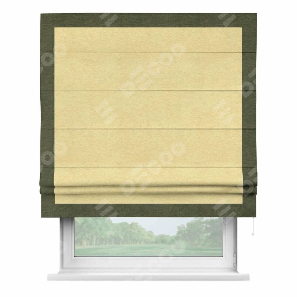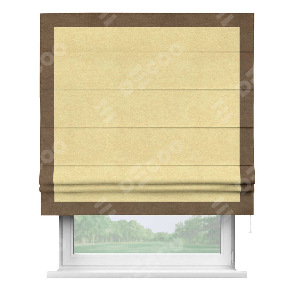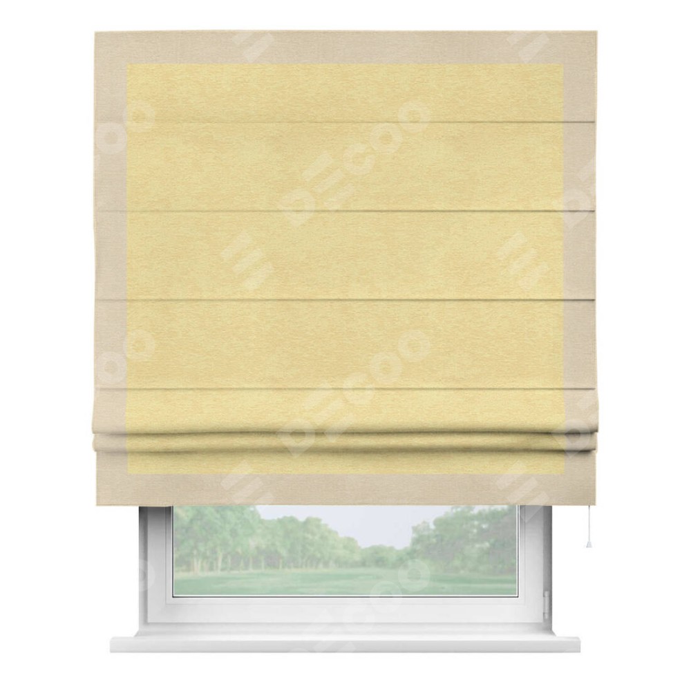 Римская штора «Кортин» с кантом Чесс, для проема, ткань софт однотонный золотой