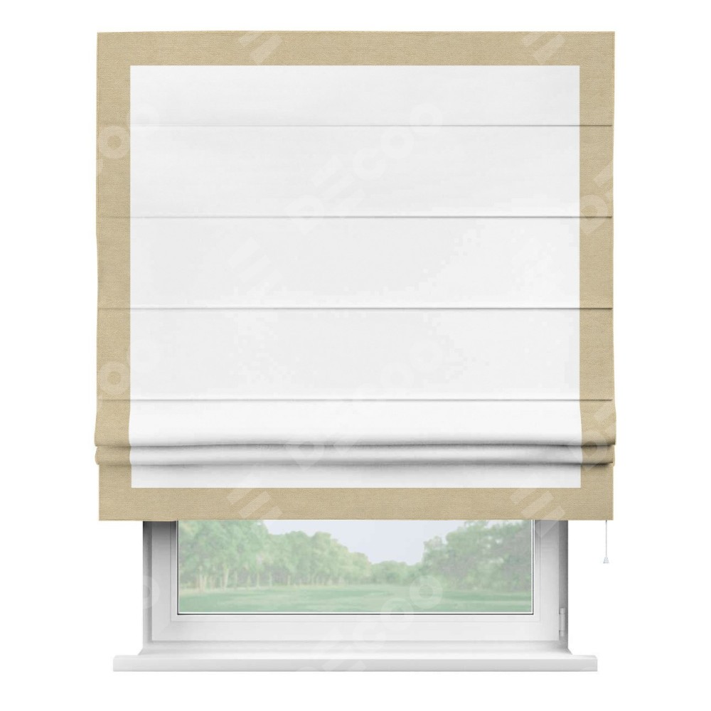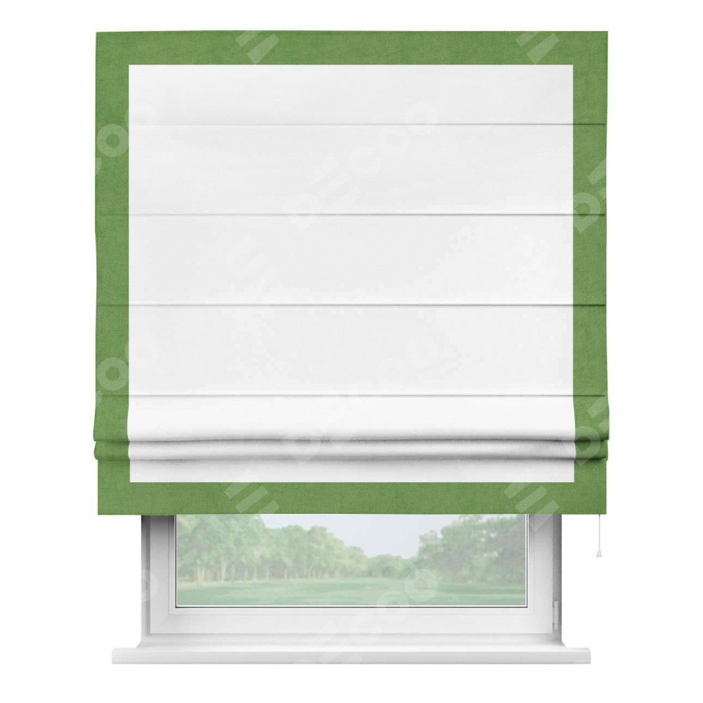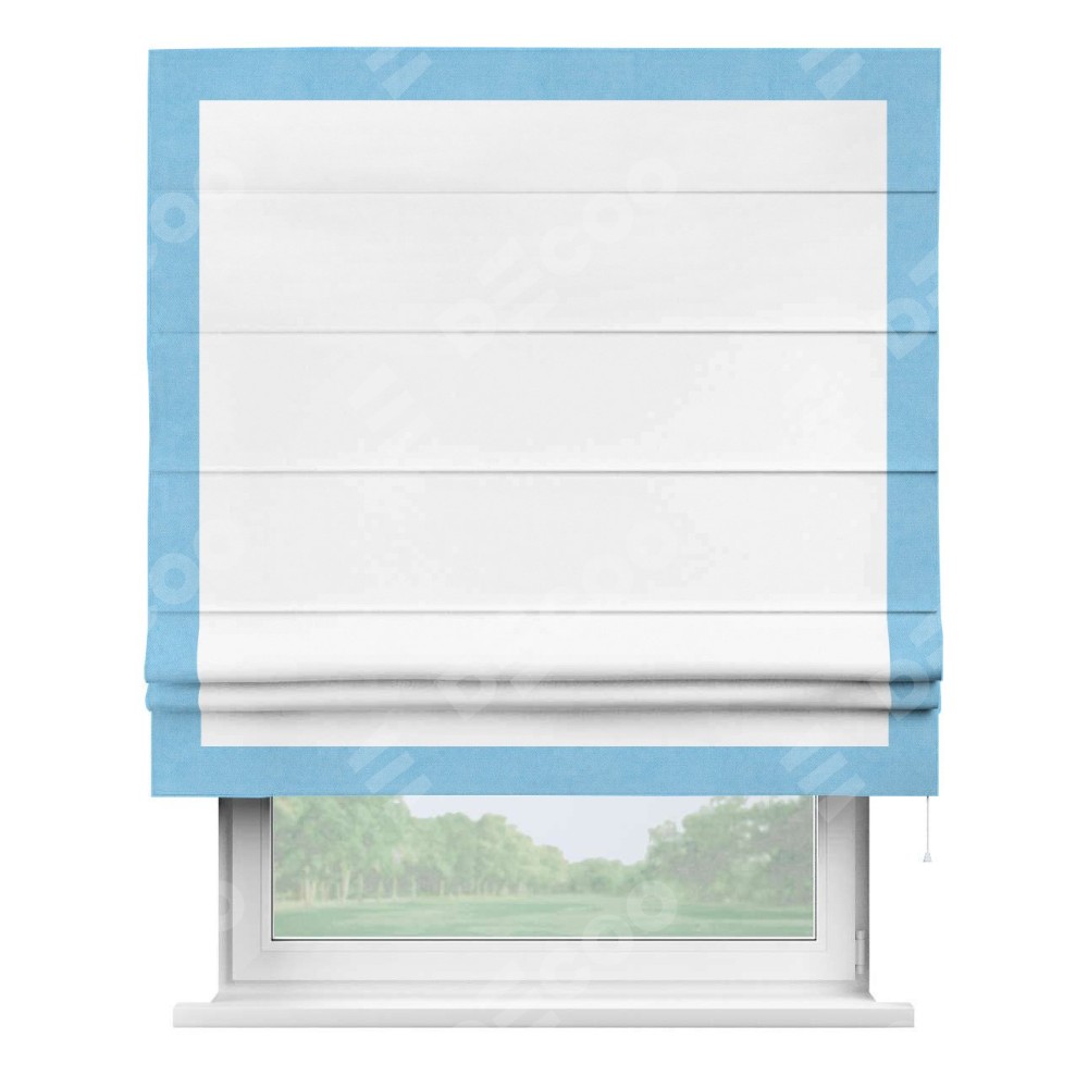 Римская штора «Кортин» с кантом Чесс, для проема, ткань вельвет белоснежный