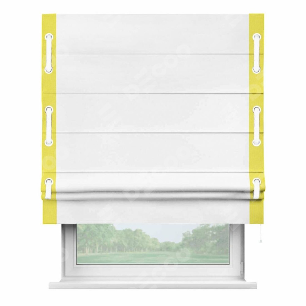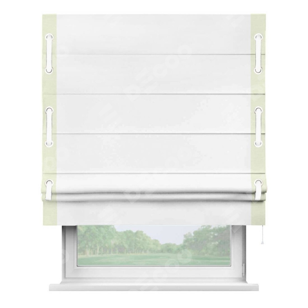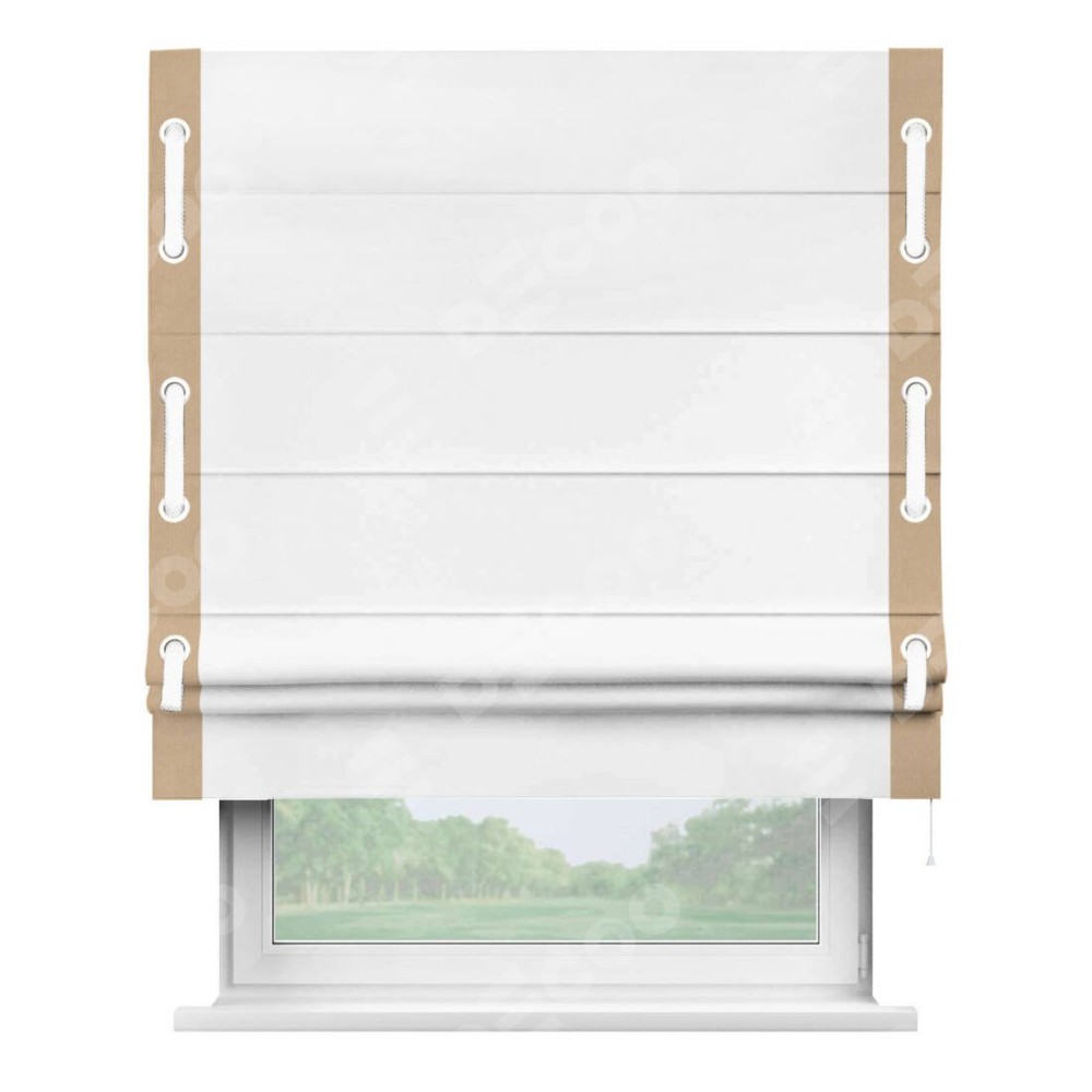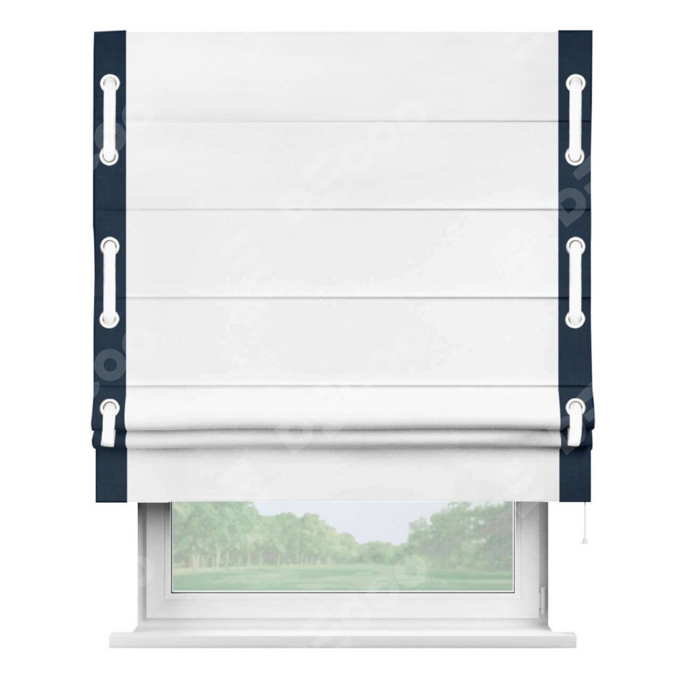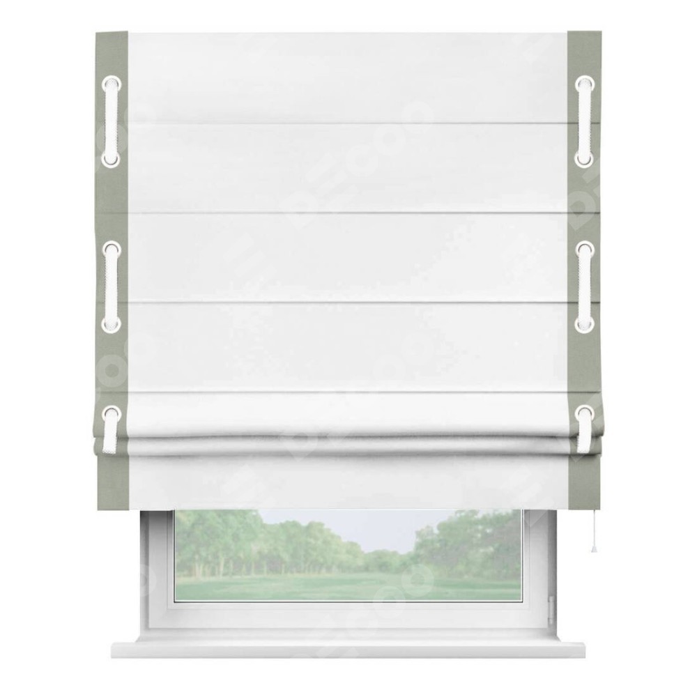 Римская штора «Кортин» с кантом Стрим Дуо (люверсы с пояском) предоставлена в следующих характеристиках:
