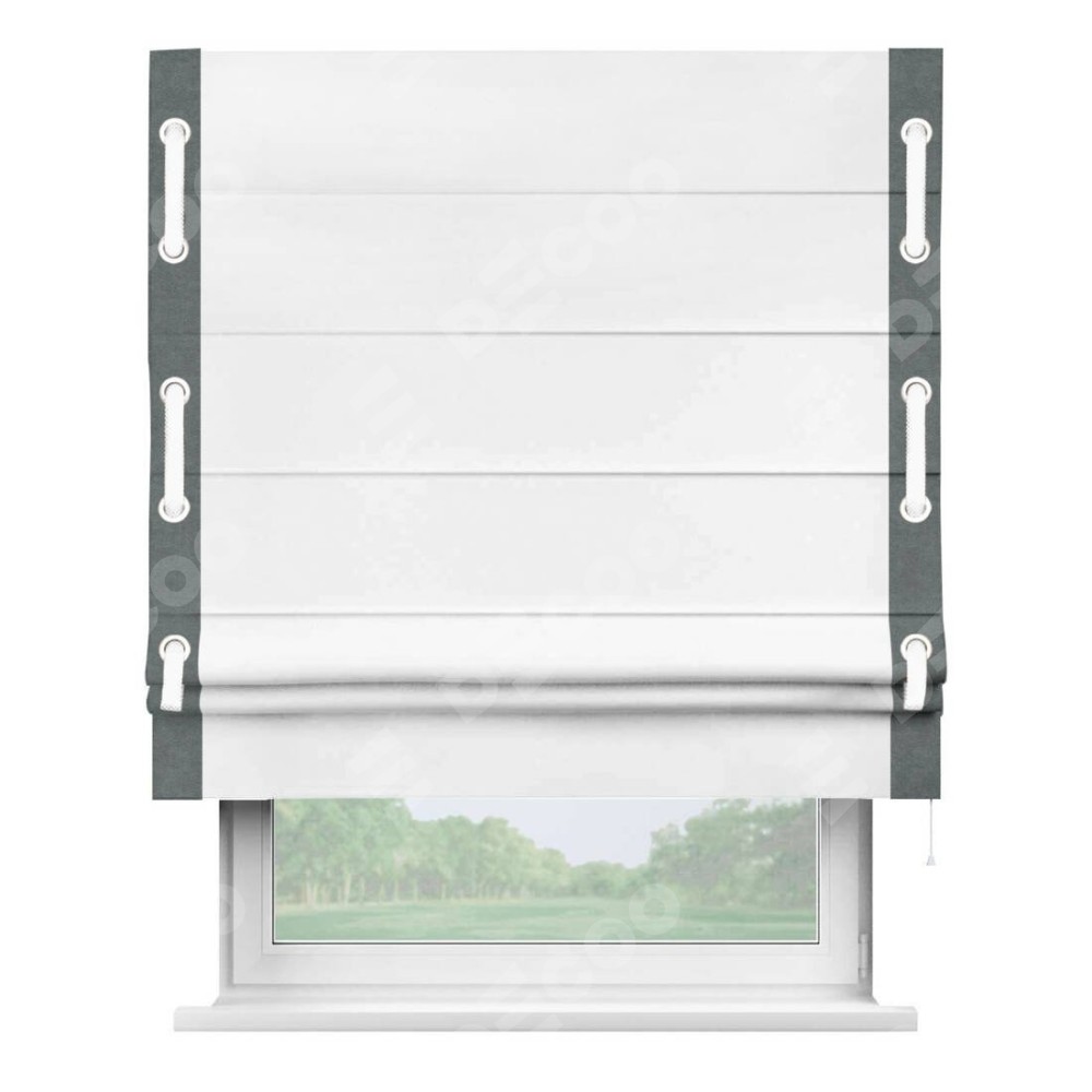 Римская штора «Кортин» с кантом Стрим Дуо (люверсы с пояском), для проема, ткань вельвет белоснежный
