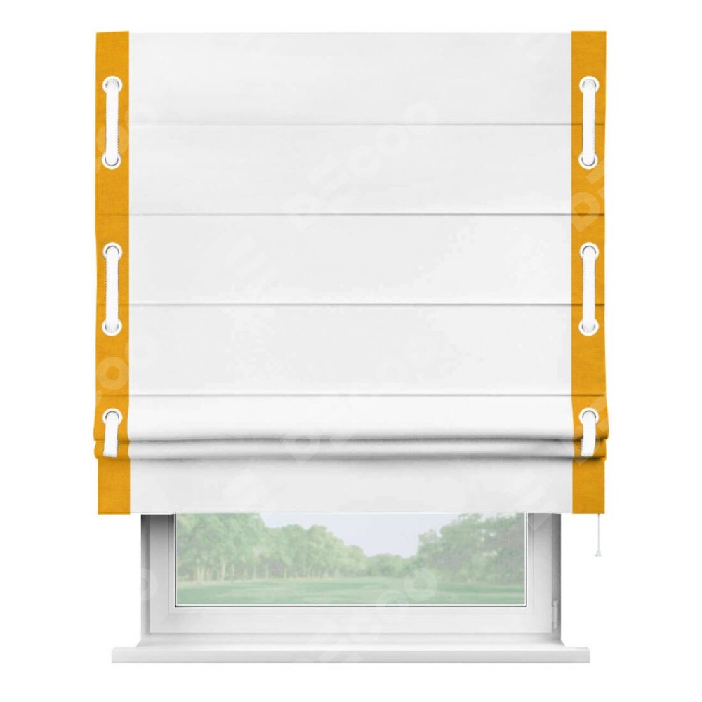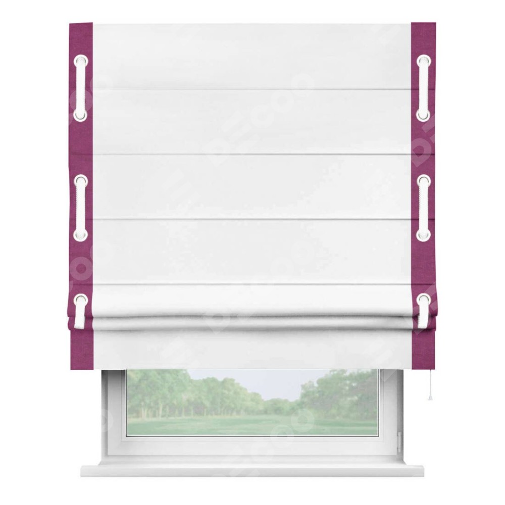 Римская штора «Кортин» с кантом Стрим Дуо (люверсы с пояском), для проема, ткань вельвет белоснежный представлена к заказу по по вашим размерам. Производственный артикул: 21999. Стоимость будет зависеть от выбранных размеров и стартует от 5 425 руб. В интернет-магазине Decoo есть возможность выбрать товар в любых вариациях.