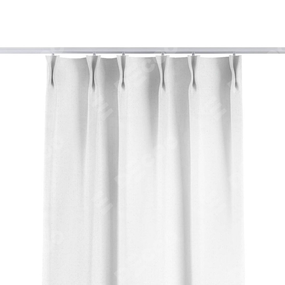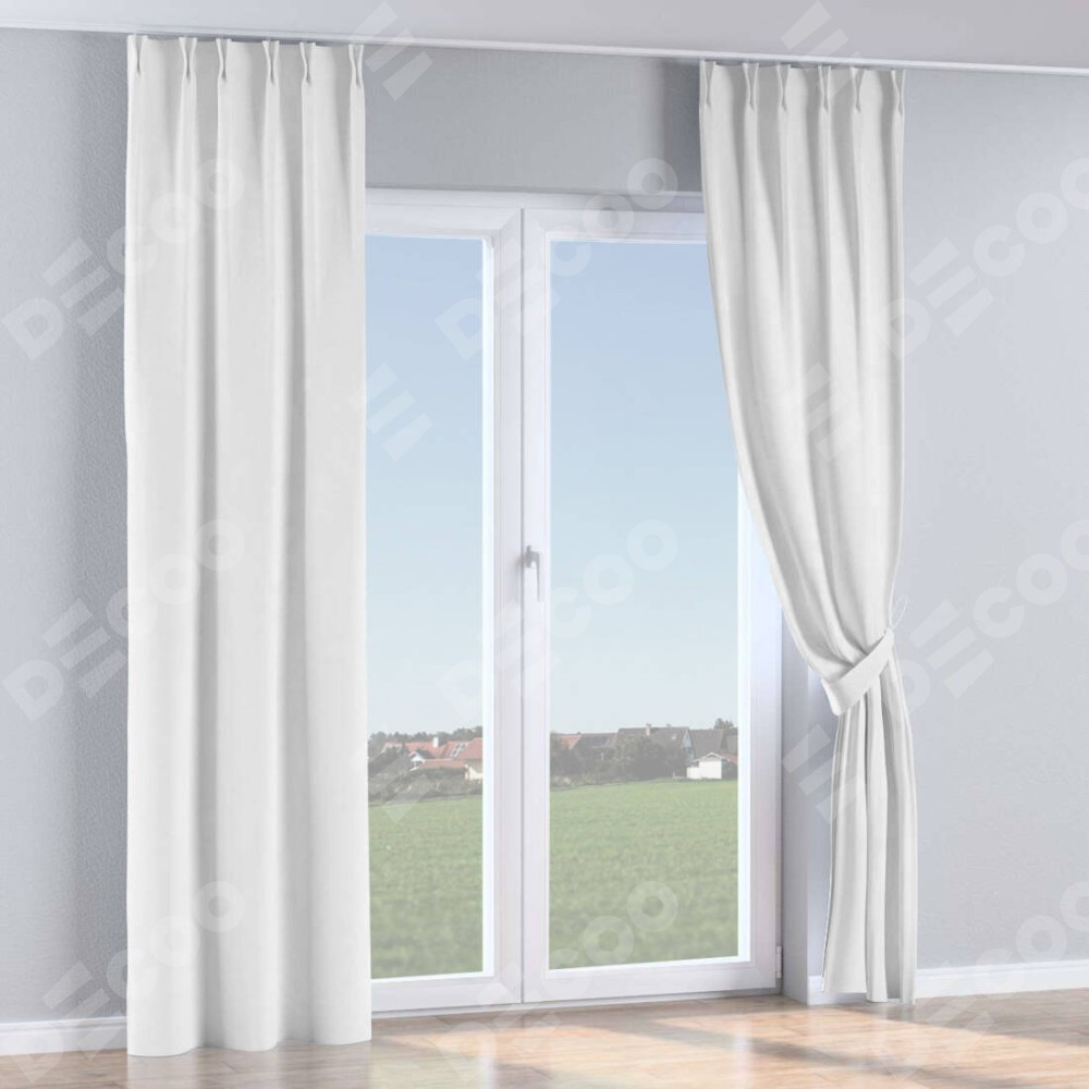 Комплект прямых штор, от производителя «Cortin», пошиты из ткани лён белый, артикул ткани 7439. С изнаночной стороны в верхней части штор пристрачивается шторная лента с декоративными складками «Кустик». Для создания элегантных складок прямые шторы шьются по стандарту с коэффициентом 1:2 (на 100 см. ширины проёма 200 см. ширины ткани).