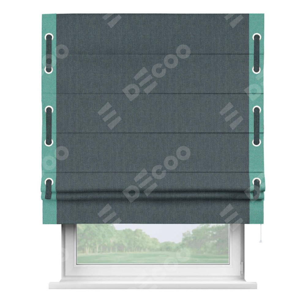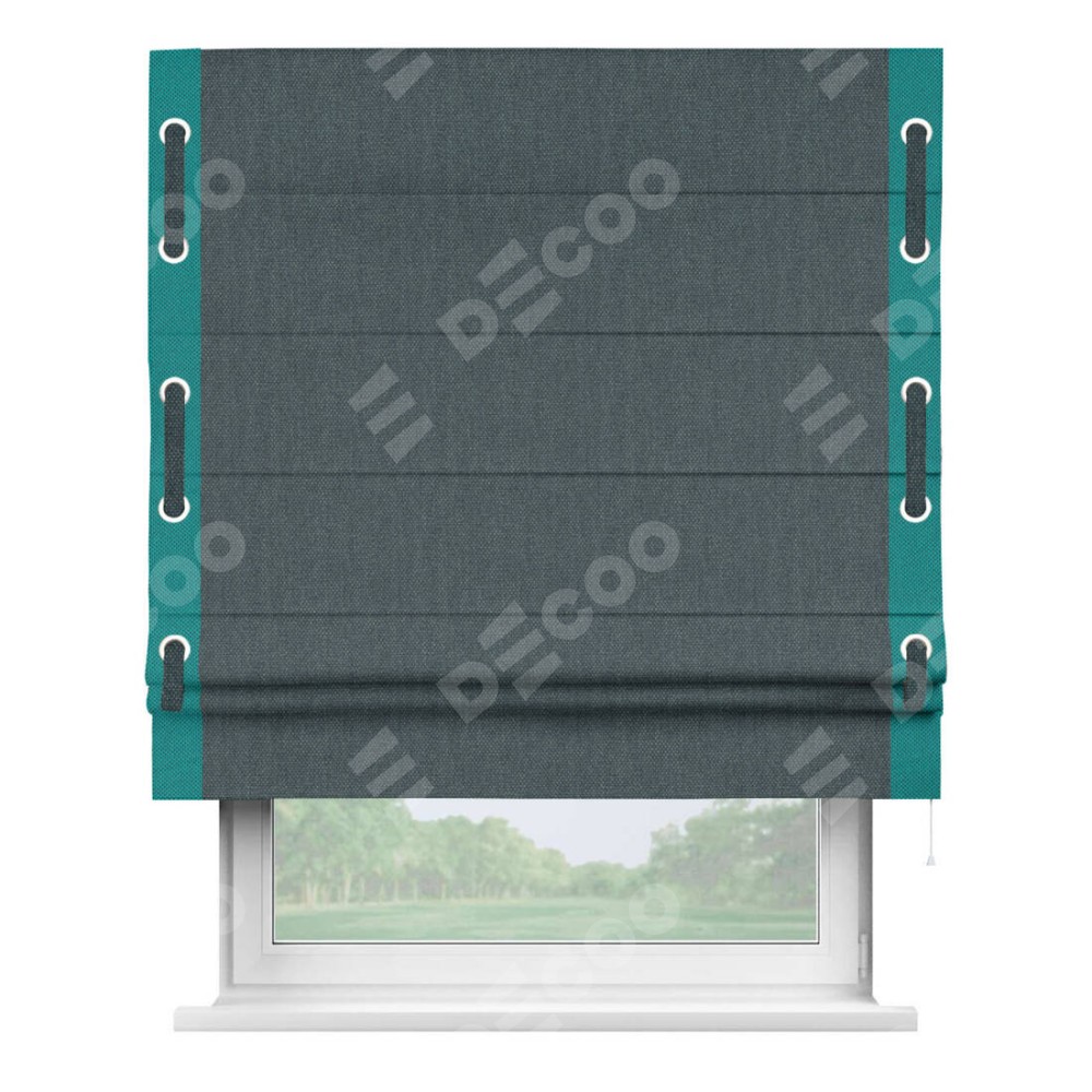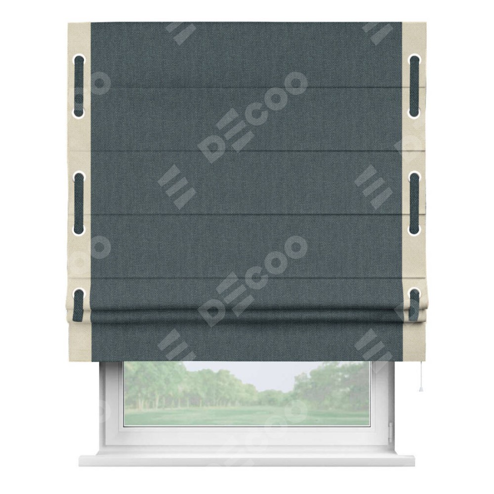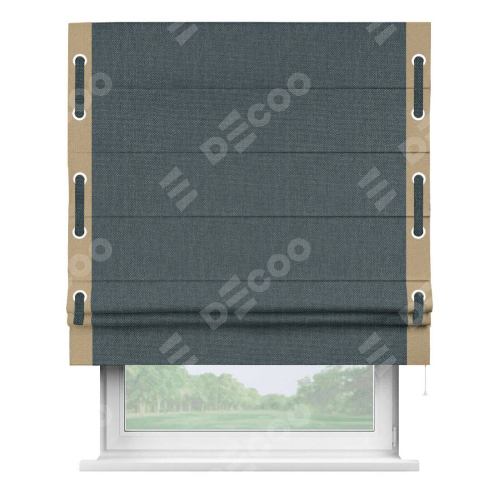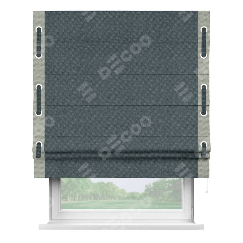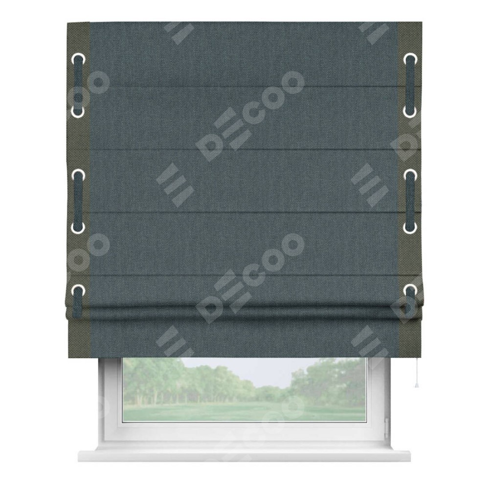 Римская штора «Кортин» с кантом Стрим Дуо (люверсы с пояском), для проема, ткань лён димаут, серо-синий