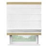 Римская штора производителя «Cortin», используется для проёма, пошита из ткани лён белоснежный, артикул 7438. Отделка шторы кантом «Горизонт», ткань для канта используется из льна разной расцветки на выбор. Имеет универсальный механизм и подходит для монтажа: на потолок, на стену и в нишу.