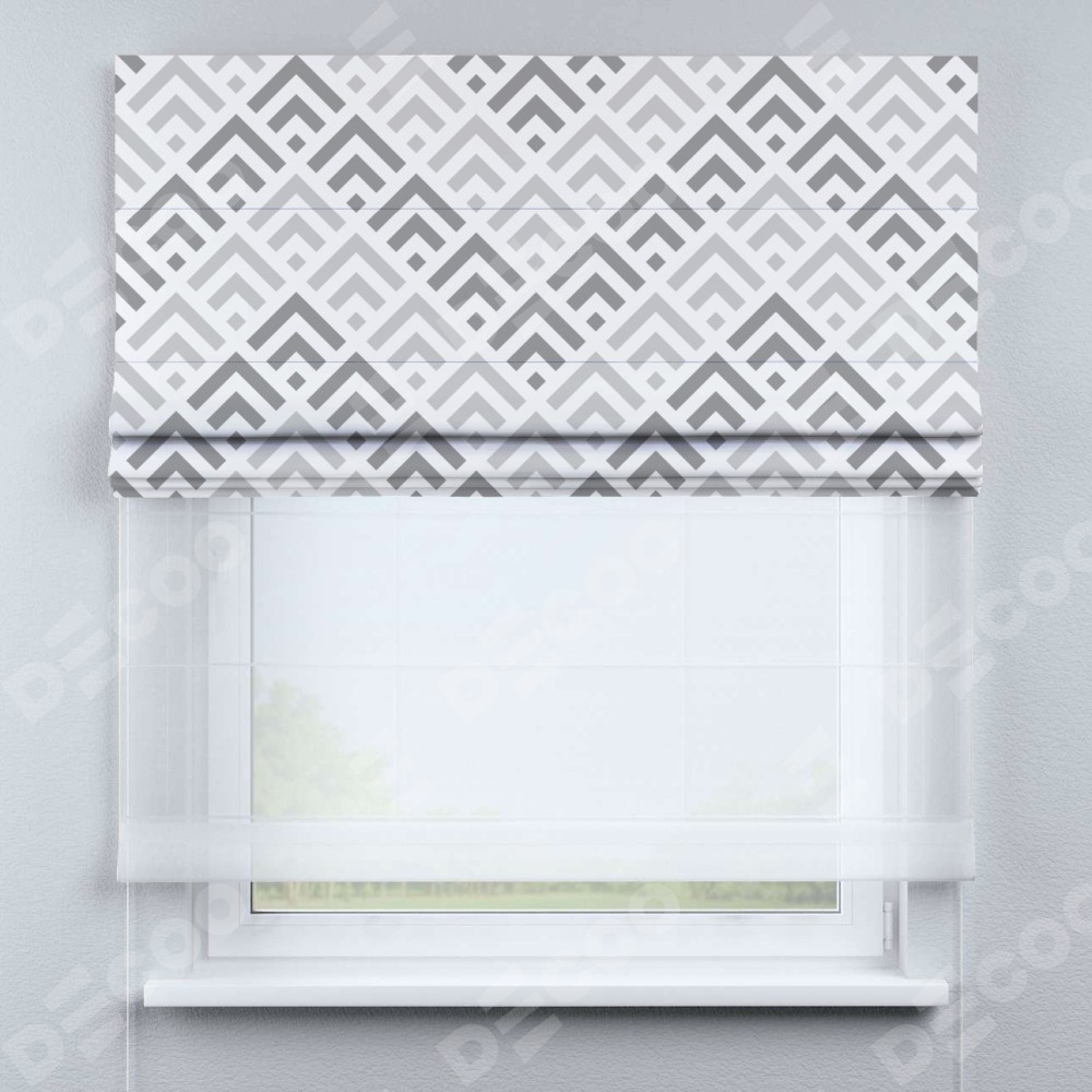 Римская штора день-ночь производителя «Cortin», используется для проёма, пошита из двух полотен, с лицевой блэкаут с нанесением сублимационной печати «Пространство», вторая ткань тюль (по стандарту комплектуется тюль белого цвета артикул V-01). Имеет универсальный механизм и подходит для монтажа: на потолок, на стену и в нишу.