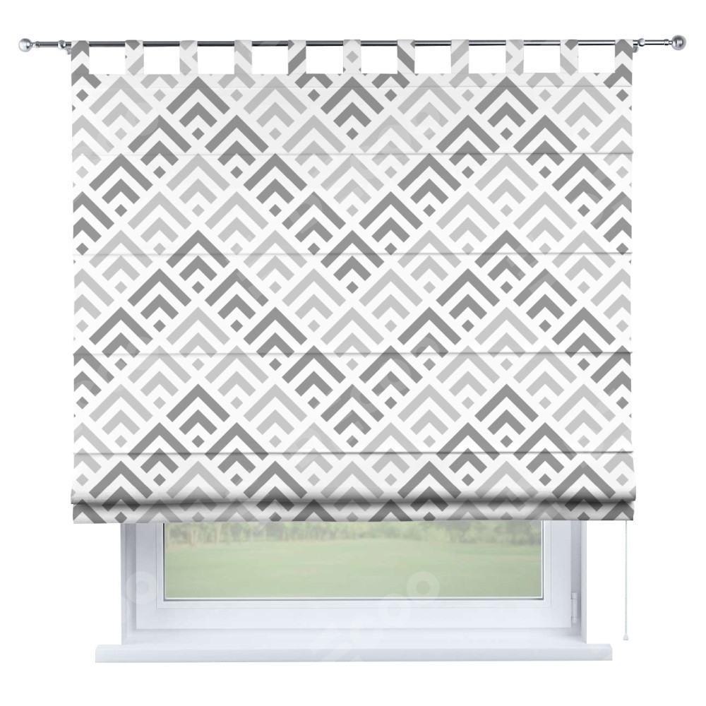 Классическая римская штора представляет собой полотно прикрепленное к карнизу, с обратной стороны полотна вшиты планки. С их помощь при сборе шторы образуются красивые горизонтальные складки.