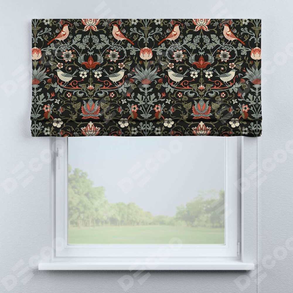 Римская штора производителя «Cortin», используется для проёма, пошита из ткани блэкаут с нанесением сублимационной печати «Зачарованные птицы». Имеет универсальный механизм и подходит для монтажа: на потолок, на стену и в нишу.
