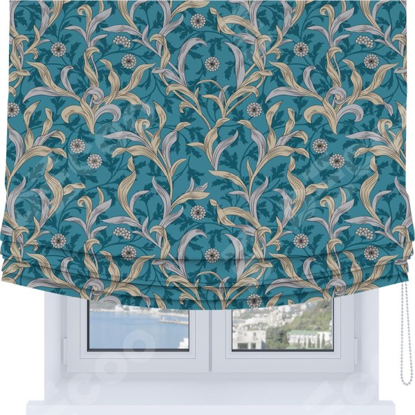 Римская штора Soft производителя «Cortin», используется для проёма, пошита из ткани блэкаут с нанесением сублимационной печати «Винтажные листья». Имеет универсальный механизм и подходит для монтажа: на потолок, на стену и в нишу. В отличие от стандартных римских штор, римская штора Soft не имеет горизонтальных вставок и нижнего отвеса. Это позволяет ткани произвольно драпироваться в свободные мягкие складки.