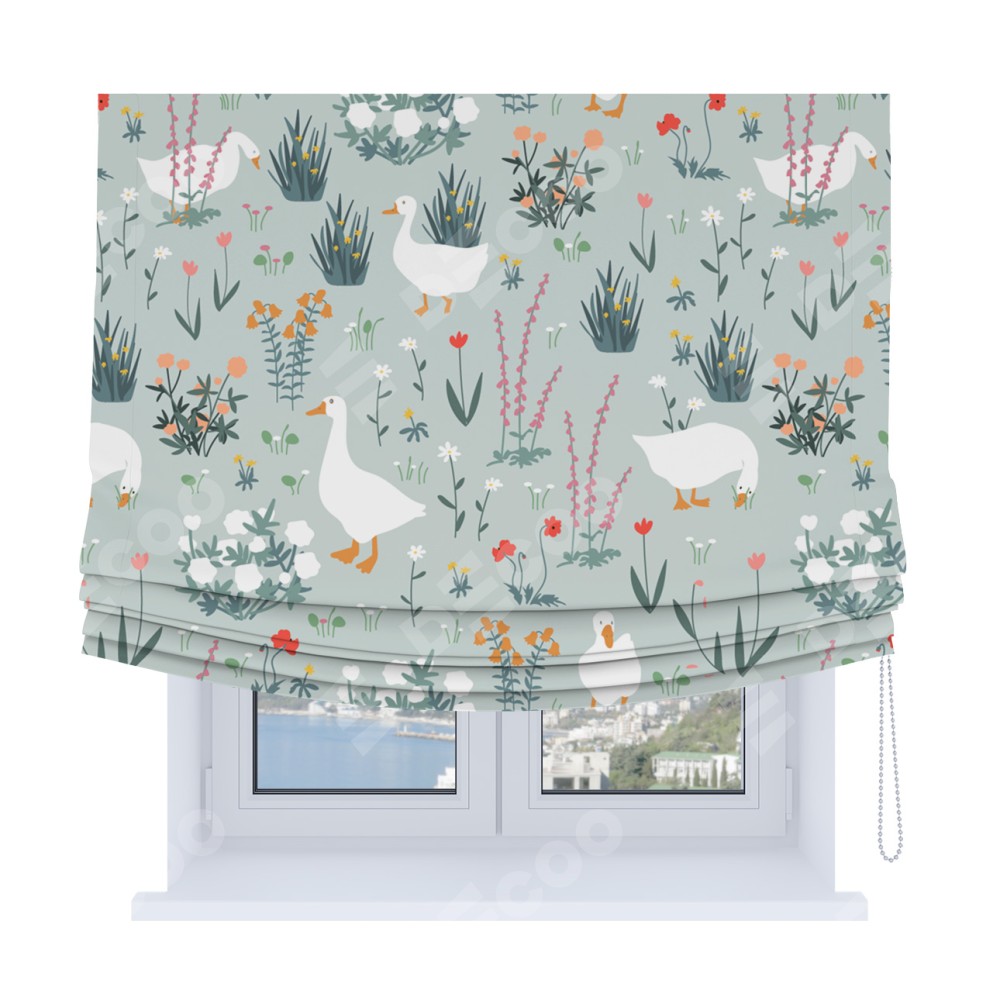 Римская штора Soft с мягкими складками, «Гуси на лугу»