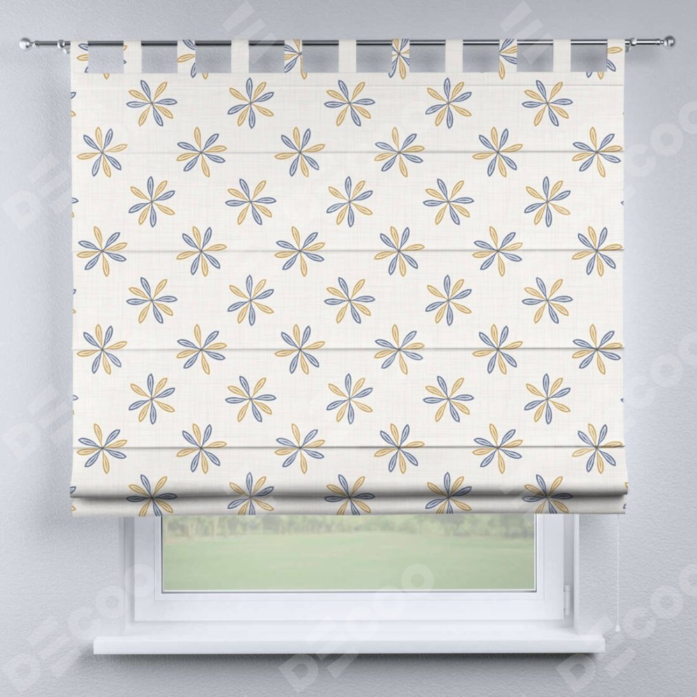Римская штора производителя «Cortin», используется для проёма, пошита из ткани блэкаут с нанесением сублимационной печати «Ромашки кантри». Данная модель пошита на петлях, комплектуется на выбор круглым карнизом и подходит для монтажа на стену. Римская штора на петлях имеет простую систему регулировки высоты, отличительным преимуществом данной модели является простой способ монтажа. Достаточно повесить ее на трубу и штора готова!