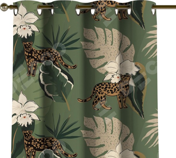 Комплект прямых штор, от производителя «Cortin», пошиты из ткани блэкаут с нанесением сублимационной печати «В тропическом лесу». Данная модель пошита на люверсах, комплектуется на выбор круглым карнизом и подходит для монтажа на стену или потолок. Прямые шторы на люверсах шьются по стандарту с коэффициентом 1/2 (на 100 см. ширины проёма 200 см. ширины ткани), отличительным преимуществом данной модели является простой способ монтажа. Достаточно повесить ее на трубу и штора готова!