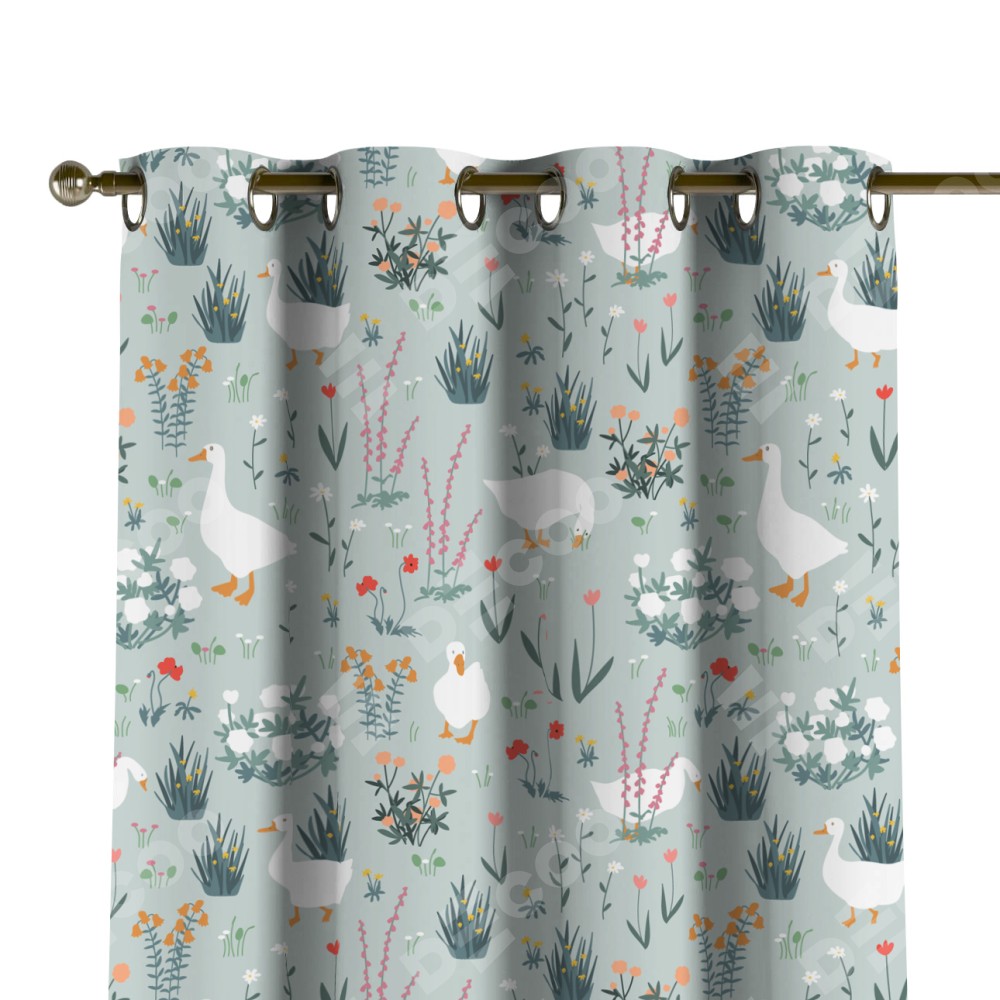 Комплект прямых штор, от производителя «Cortin», пошиты из ткани блэкаут с нанесением сублимационной печати «Гуси на лугу». Данная модель пошита на люверсах, комплектуется на выбор круглым карнизом и подходит для монтажа на стену или потолок. Прямые шторы на люверсах шьются по стандарту с коэффициентом 1/2 (на 100 см. ширины проёма 200 см. ширины ткани), отличительным преимуществом данной модели является простой способ монтажа. Достаточно повесить ее на трубу и штора готова!