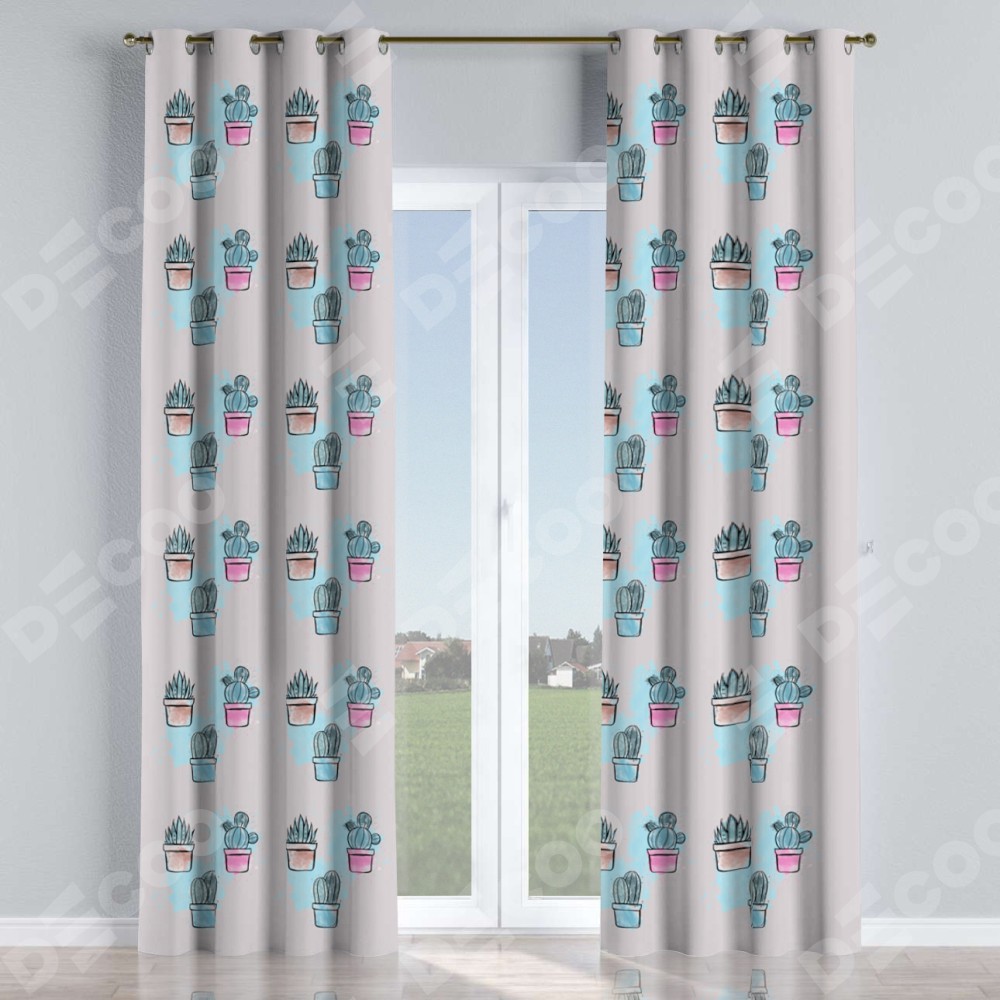 Комплект прямых штор, от производителя «Cortin», пошиты из ткани блэкаут с нанесением сублимационной печати «Кактусовая оранжерея». Данная модель пошита на люверсах, комплектуется на выбор круглым карнизом и подходит для монтажа на стену или потолок. Прямые шторы на люверсах шьются по стандарту с коэффициентом 1/2 (на 100 см. ширины проёма 200 см. ширины ткани), отличительным преимуществом данной модели является простой способ монтажа. Достаточно повесить ее на трубу и штора готова!