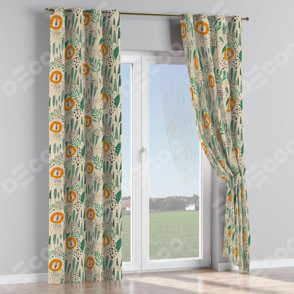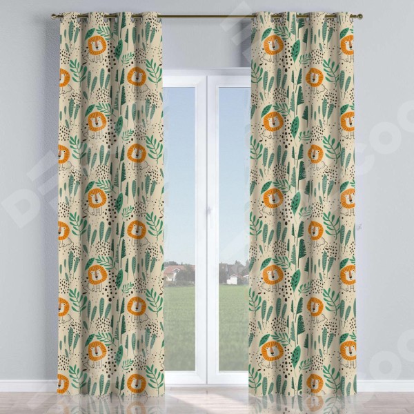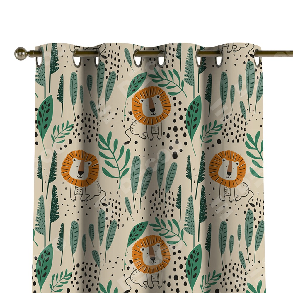 Комплект прямых штор, от производителя «Cortin», пошиты из ткани блэкаут с нанесением сублимационной печати «Лев из джунглей». Данная модель пошита на люверсах, комплектуется на выбор круглым карнизом и подходит для монтажа на стену или потолок. Прямые шторы на люверсах шьются по стандарту с коэффициентом 1/2 (на 100 см. ширины проёма 200 см. ширины ткани), отличительным преимуществом данной модели является простой способ монтажа. Достаточно повесить ее на трубу и штора готова!