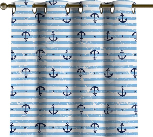 Комплект прямых штор, от производителя «Cortin», пошиты из ткани блэкаут с нанесением сублимационной печати «Полоски и якори». Данная модель пошита на люверсах, комплектуется на выбор круглым карнизом и подходит для монтажа на стену или потолок. Прямые шторы на люверсах шьются по стандарту с коэффициентом 1/2 (на 100 см. ширины проёма 200 см. ширины ткани), отличительным преимуществом данной модели является простой способ монтажа. Достаточно повесить ее на трубу и штора готова!