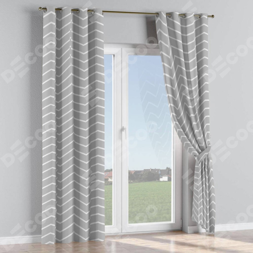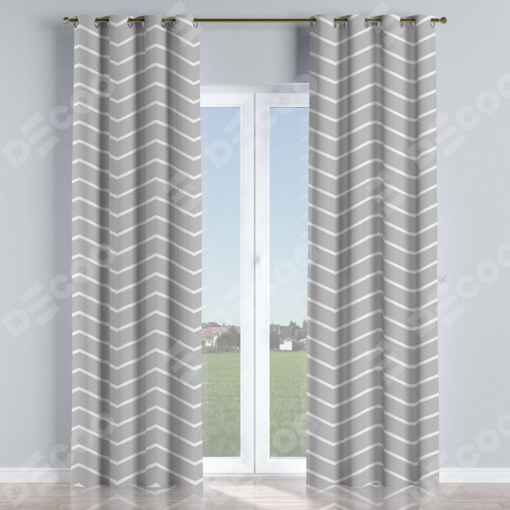 Комплект штор на люверсах «Серый зигзаг» отлично подойдёт для интерьера зал, для коттеджа и для кухни.