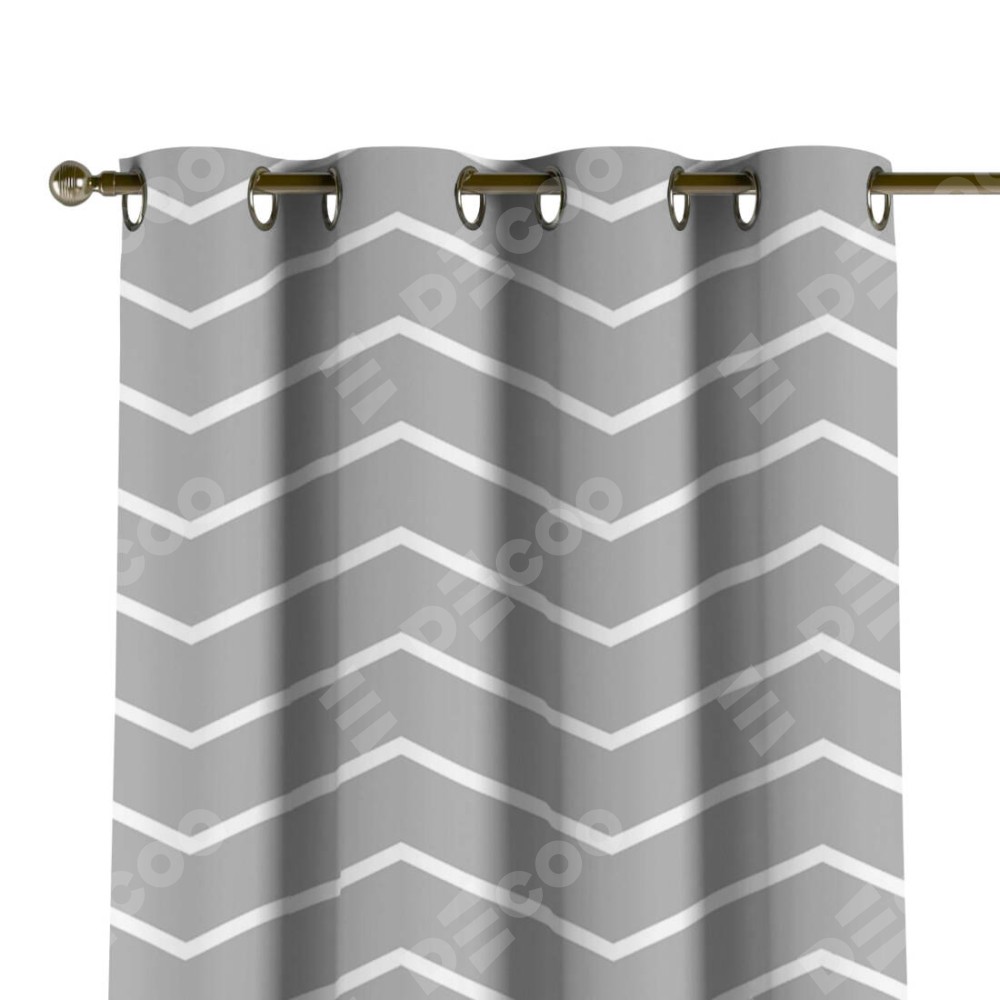 Комплект прямых штор, от производителя «Cortin», пошиты из ткани блэкаут с нанесением сублимационной печати «Серый зигзаг». Данная модель пошита на люверсах, комплектуется на выбор круглым карнизом и подходит для монтажа на стену или потолок. Прямые шторы на люверсах шьются по стандарту с коэффициентом 1/2 (на 100 см. ширины проёма 200 см. ширины ткани), отличительным преимуществом данной модели является простой способ монтажа. Достаточно повесить ее на трубу и штора готова!