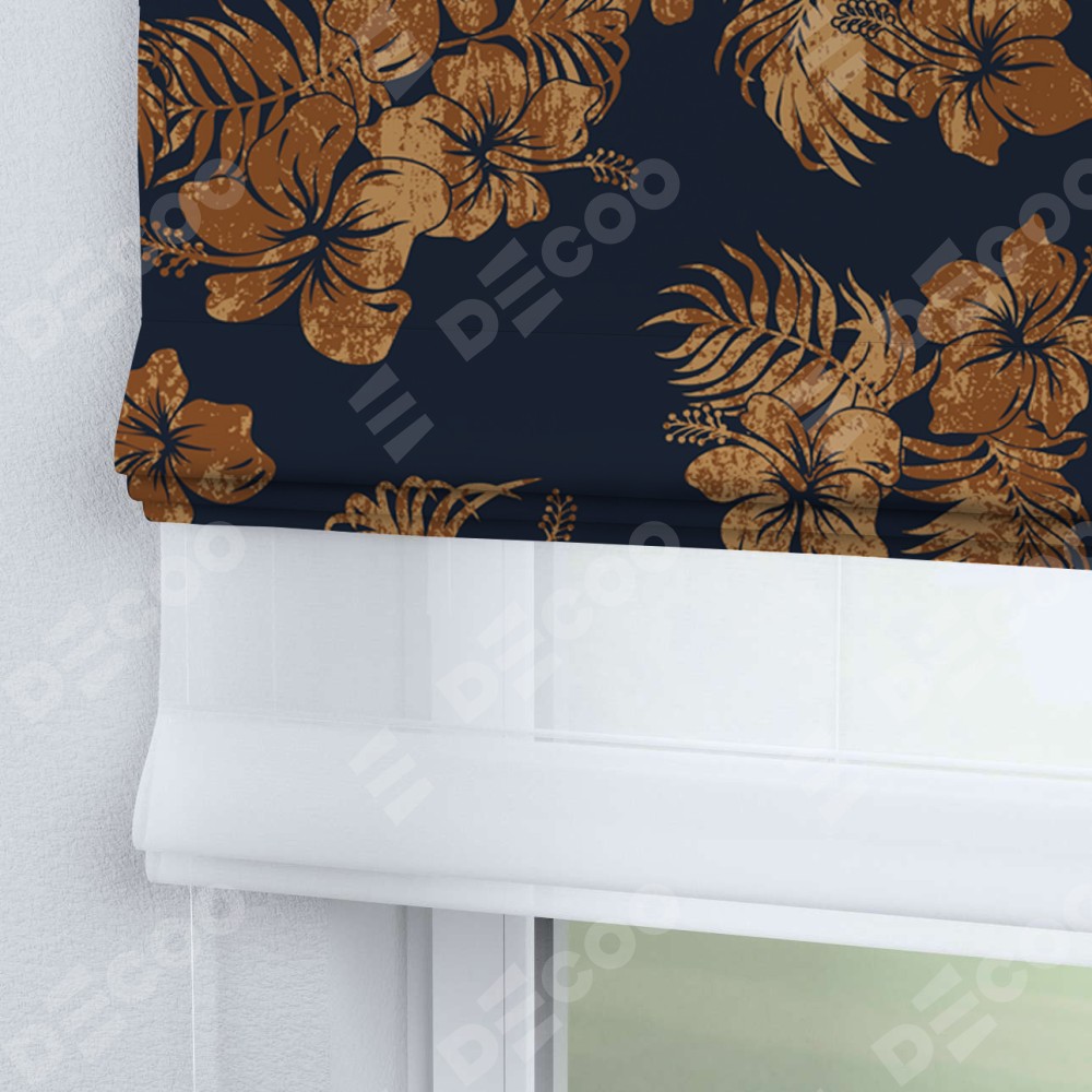 Римская штора день-ночь производителя «Cortin», используется для проёма, пошита из двух полотен, с лицевой блэкаут с нанесением сублимационной печати «Китайская роза», вторая ткань тюль (по стандарту комплектуется тюль белого цвета артикул V-01). Имеет универсальный механизм и подходит для монтажа: на потолок, на стену и в нишу.