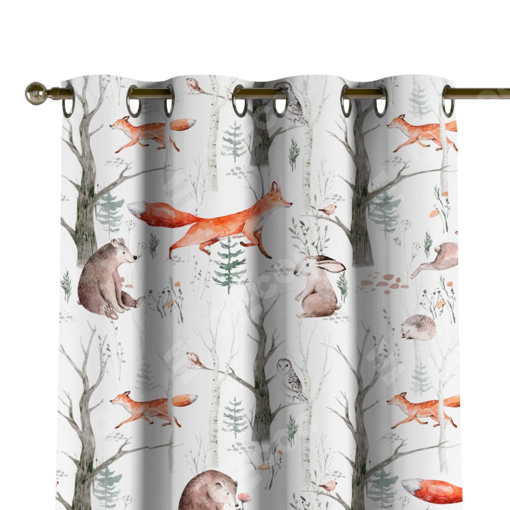 Комплект прямых штор, от производителя «Cortin», пошиты из ткани блэкаут с нанесением сублимационной печати «Лесной питомник». Данная модель пошита на люверсах, комплектуется на выбор круглым карнизом и подходит для монтажа на стену или потолок. Прямые шторы на люверсах шьются по стандарту с коэффициентом 1/2 (на 100 см. ширины проёма 200 см. ширины ткани), отличительным преимуществом данной модели является простой способ монтажа. Достаточно повесить ее на трубу и штора готова!