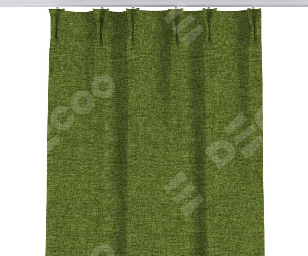 Комплект прямых штор, от производителя «Cortin», пошиты из ткани рогожка димаут салатовый, артикул ткани 80423. С изнаночной стороны в верхней части штор пристрачивается шторная лента с декоративными складками «Кустик». Для создания элегантных складок прямые шторы шьются по стандарту с коэффициентом 1:2 (на 100 см. ширины проёма 200 см. ширины ткани).