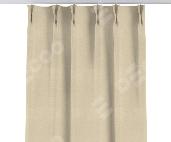 Комплект прямых штор, от производителя «Cortin», пошиты из ткани блэкаут однотонный бежевый, артикул ткани 13125. С изнаночной стороны в верхней части штор пристрачивается шторная лента с декоративными складками «Кустик». Для создания элегантных складок прямые шторы шьются по стандарту с коэффициентом 1:2 (на 100 см. ширины проёма 200 см. ширины ткани).