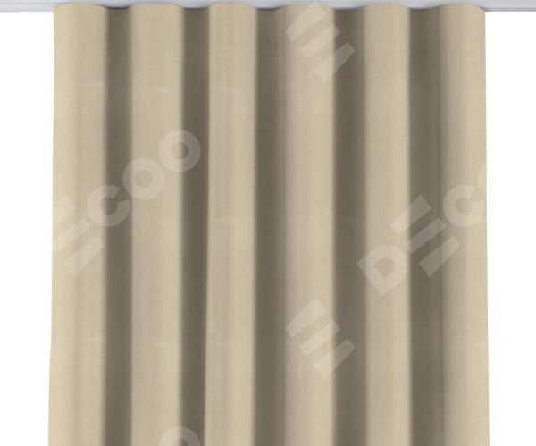 Комплект прямых штор, от производителя «Cortin», пошиты из ткани блэкаут однотонный бежевый, артикул ткани 13125. С изнаночной стороны в верхней части штор пристрачивается шторная лента с декоративными складками «Волна». Для создания элегантных складок прямые шторы шьются по стандарту с коэффициентом 1:2 (на 100 см. ширины проёма 200 см. ширины ткани).