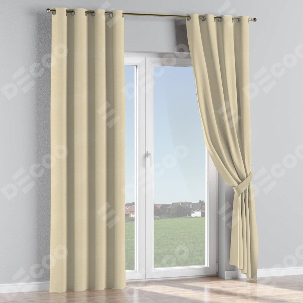 Комплект прямых штор, от производителя «Cortin», пошиты из ткани блэкаут однотонный бежевый, артикул ткани 13125. Данная модель пошита на люверсах, комплектуется на выбор круглым карнизом и подходит для монтажа на стену или потолок. Прямые шторы на люверсах шьются по стандарту с коэффициентом 1/2 (на 100 см. ширины проёма 200 см. ширины ткани), отличительным преимуществом данной модели является простой способ монтажа. Достаточно повесить ее на трубу и штора готова!