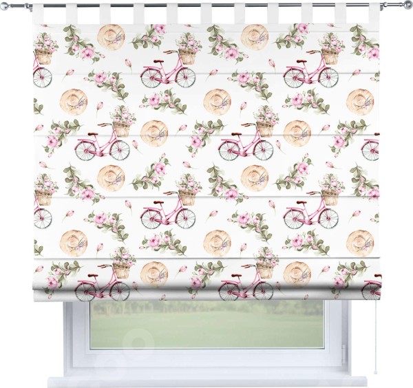 Римская штора производителя «Cortin», используется для проёма, пошита из ткани блэкаут с нанесением сублимационной печати «Розовый велосипед». Данная модель пошита на петлях, комплектуется на выбор круглым карнизом и подходит для монтажа на стену. Римская штора на петлях имеет простую систему регулировки высоты, отличительным преимуществом данной модели является простой способ монтажа. Достаточно повесить ее на трубу и штора готова!