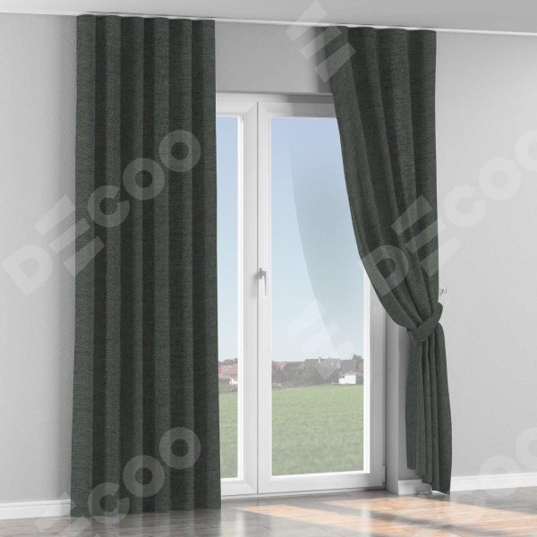 Комплект прямых штор, от производителя «Cortin», пошиты из ткани стиф димаут графит, артикул ткани 44026. С изнаночной стороны в верхней части штор пристрачивается шторная лента с декоративными складками «Волна». Для создания элегантных складок прямые шторы шьются по стандарту с коэффициентом 1:2 (на 100 см. ширины проёма 200 см. ширины ткани).