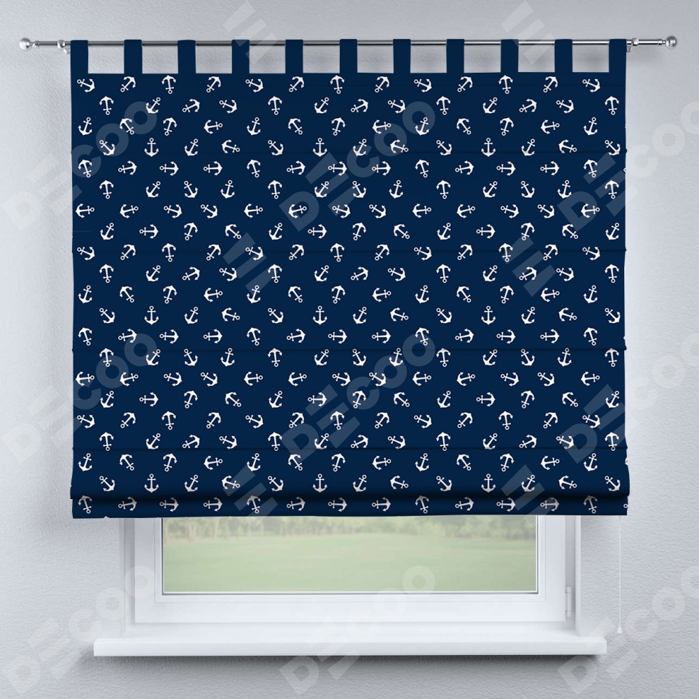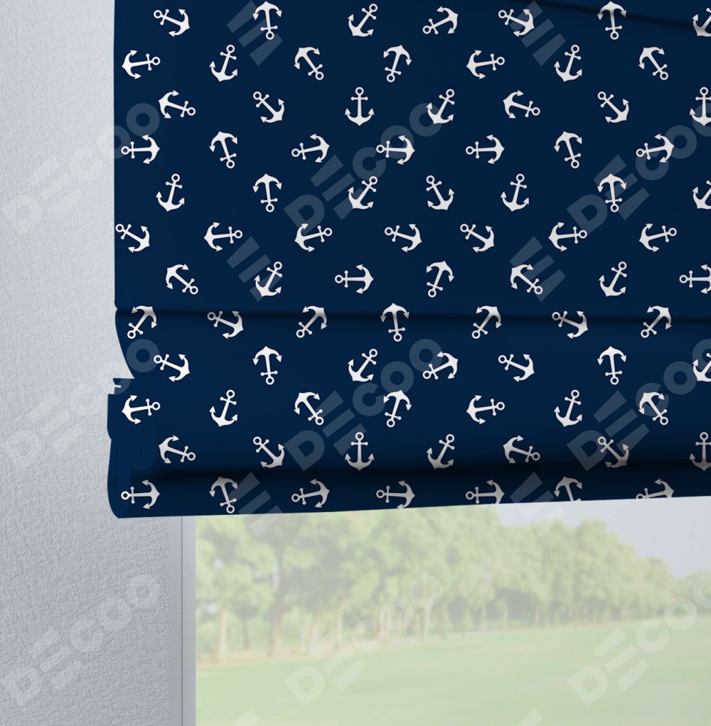 Римская штора производителя «Cortin», используется для проёма, пошита из ткани блэкаут с нанесением сублимационной печати «Морские якори». Данная модель пошита на петлях, комплектуется на выбор круглым карнизом и подходит для монтажа на стену. Римская штора на петлях имеет простую систему регулировки высоты, отличительным преимуществом данной модели является простой способ монтажа. Достаточно повесить ее на трубу и штора готова!