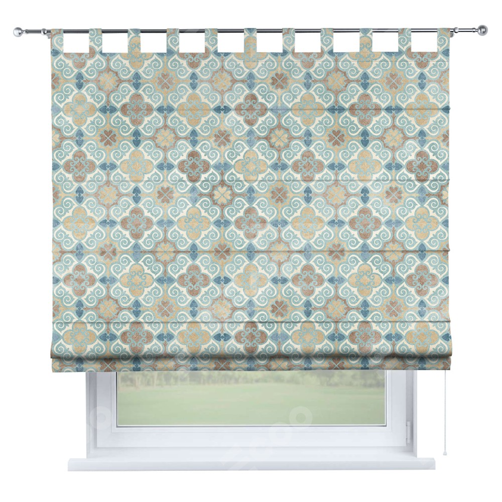 Римская штора производителя «Cortin», используется для проёма, пошита из ткани блэкаут с нанесением сублимационной печати «Фарида». Данная модель пошита на петлях, комплектуется на выбор круглым карнизом и подходит для монтажа на стену. Римская штора на петлях имеет простую систему регулировки высоты, отличительным преимуществом данной модели является простой способ монтажа. Достаточно повесить ее на трубу и штора готова!