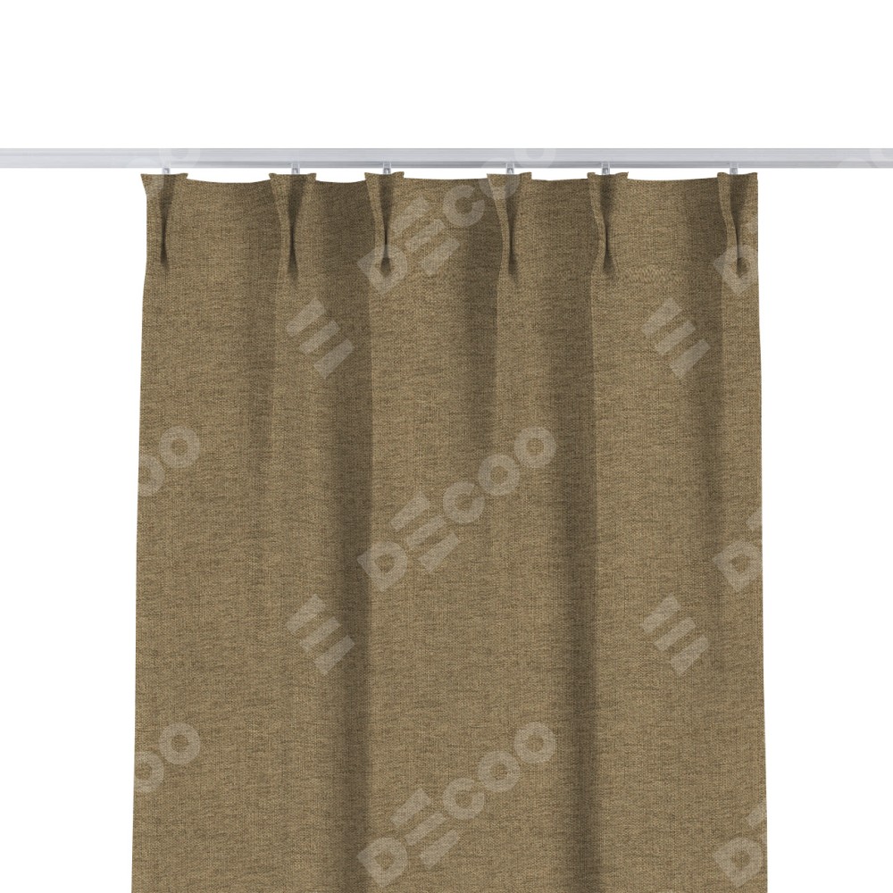 Комплект прямых штор, от производителя «Cortin», пошиты из ткани стиф димаут тёмно-бежевый, артикул ткани 18085. С изнаночной стороны в верхней части штор пристрачивается шторная лента с декоративными складками «Кустик». Для создания элегантных складок прямые шторы шьются по стандарту с коэффициентом 1:2 (на 100 см. ширины проёма 200 см. ширины ткани).