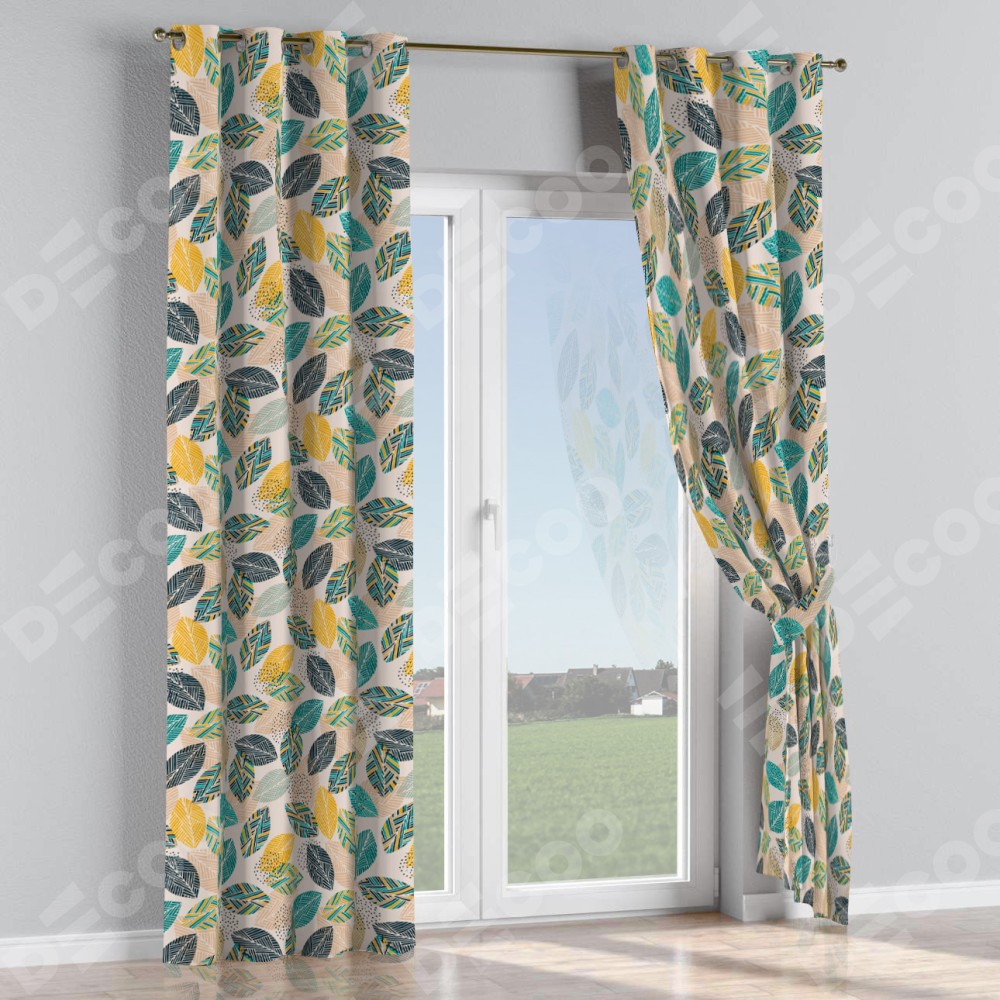 Комплект прямых штор, от производителя «Cortin», пошиты из ткани блэкаут с нанесением сублимационной печати «Листья с орнаментом». Данная модель пошита на люверсах, комплектуется на выбор круглым карнизом и подходит для монтажа на стену или потолок. Прямые шторы на люверсах шьются по стандарту с коэффициентом 1/2 (на 100 см. ширины проёма 200 см. ширины ткани), отличительным преимуществом данной модели является простой способ монтажа. Достаточно повесить ее на трубу и штора готова!
