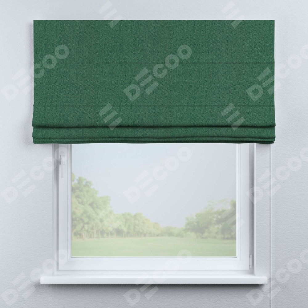 Римская штора производителя «Cortin», используется для проёма, пошита из ткани твид блэкаут зелёный, артикул ткани 21589. Имеет универсальный механизм и подходит для монтажа: на потолок, на стену и в нишу.