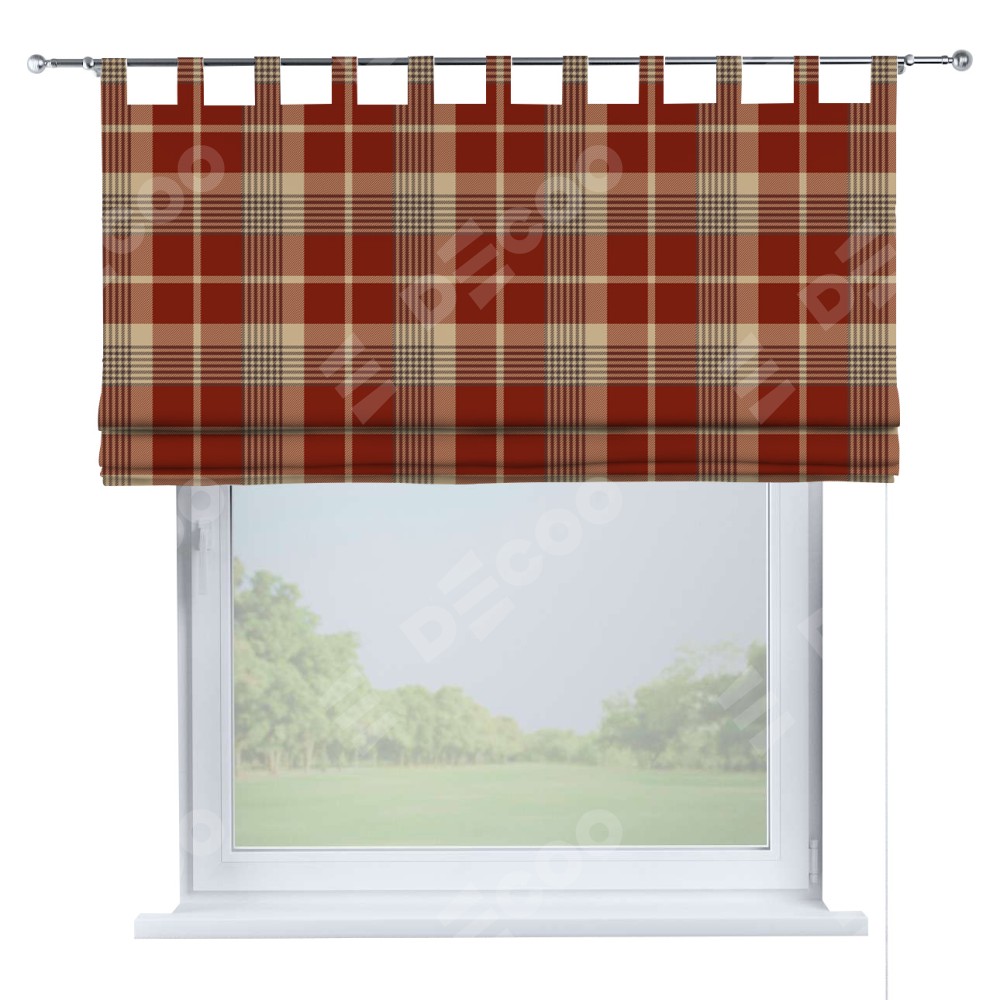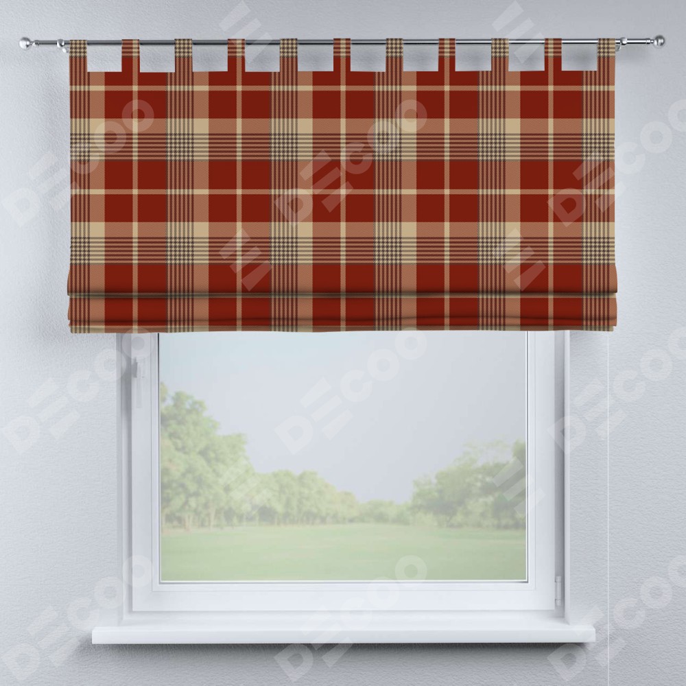 Римская штора на петлях «Бежево-бордовая клетка»