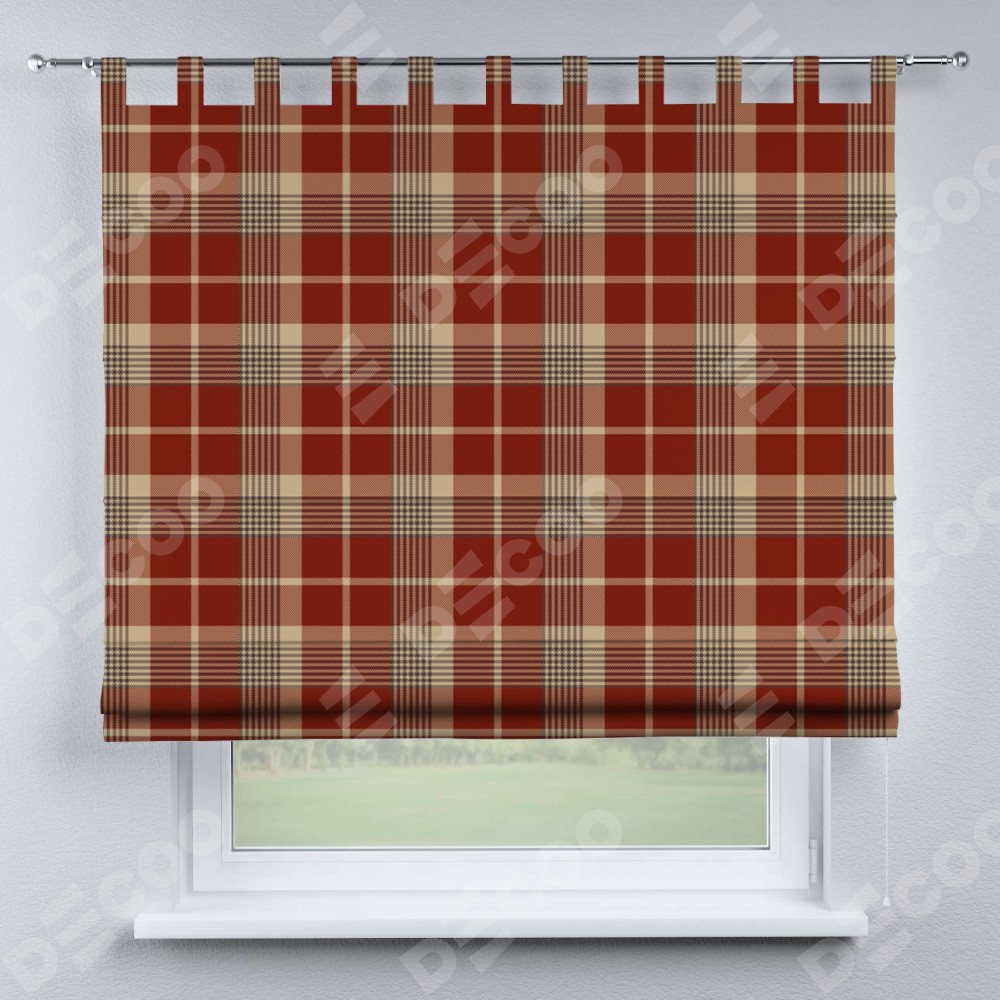 Римская штора производителя «Cortin», используется для проёма, пошита из ткани блэкаут с нанесением сублимационной печати «Бежево-бордовая клетка». Данная модель пошита на петлях, комплектуется на выбор круглым карнизом и подходит для монтажа на стену. Римская штора на петлях имеет простую систему регулировки высоты, отличительным преимуществом данной модели является простой способ монтажа. Достаточно повесить ее на трубу и штора готова!