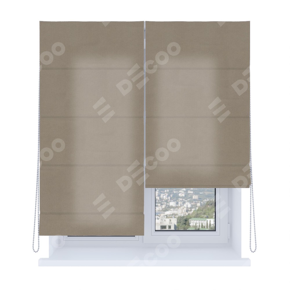 Римская штора производителя «Cortin», используется для проёма, пошита из ткани вельвет кофейный, артикул ткани 30980. Имеет универсальный механизм и подходит для монтажа: на потолок, на стену и в нишу. Удобное управление каждой шторой отдельно.