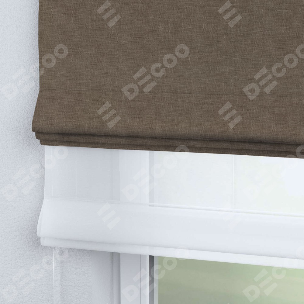 Римская штора день-ночь производителя «Cortin», используется для проёма, пошита из двух полотен, с лицевой стороны лён мокко артикул 7444, вторая ткань тюль (по стандарту комплектуется тюль белого цвета артикул V-01). Имеет универсальный механизм и подходит для монтажа: на потолок, на стену и в нишу.