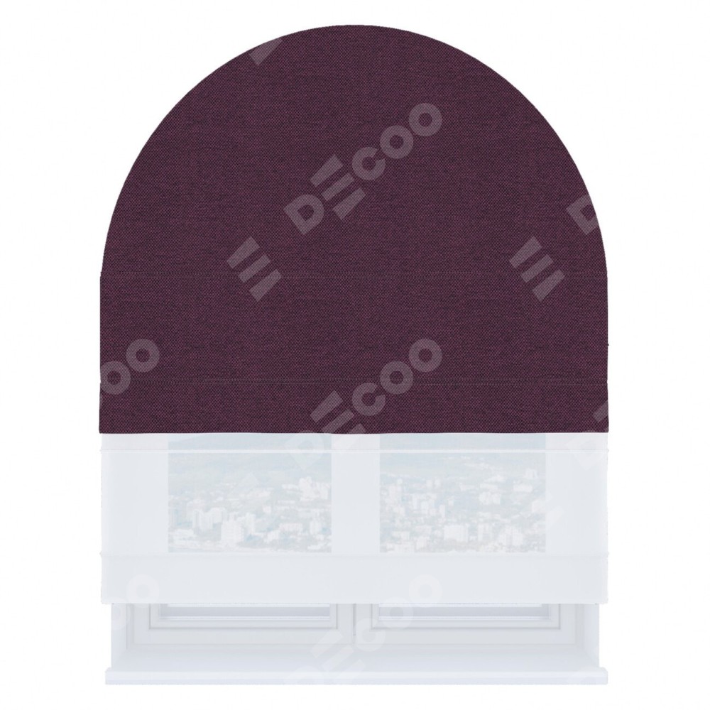 Римская штора день-ночь производителя «Cortin», используется для арочного проёма, пошита из двух полотен, с лицевой стороны лён димаут фиолетовый артикул 8817, вторая ткань тюль (по стандарту комплектуется тюль белого цвета артикул V-01). Штора шьётся по индивидуальным размерам, для данного типа римской шторы возможная ширина от 60 до 300 см. Удобное управление каждой шторой отдельно.