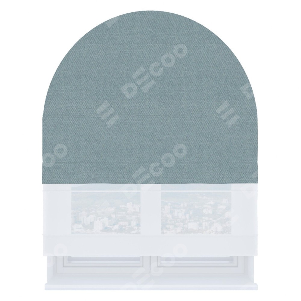 Римская штора день-ночь производителя «Cortin», используется для арочного проёма, пошита из двух полотен, с лицевой стороны блэкаут тиснение с блеском синий артикул 34625, вторая ткань тюль (по стандарту комплектуется тюль белого цвета артикул V-01). Изнаночная сторона основного материала черного цвета, что обеспечивает необходимую светонепроницаемость. Штора шьётся по индивидуальным размерам, для данного типа римской шторы возможная ширина от 60 до 300 см. Удобное управление каждой шторой отдельно.
